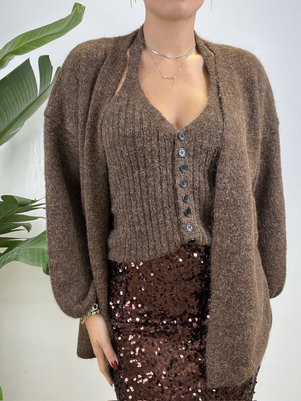 CAMICIA CON CANOTTA RIGHE MARRONE
