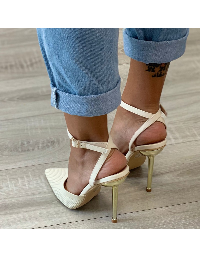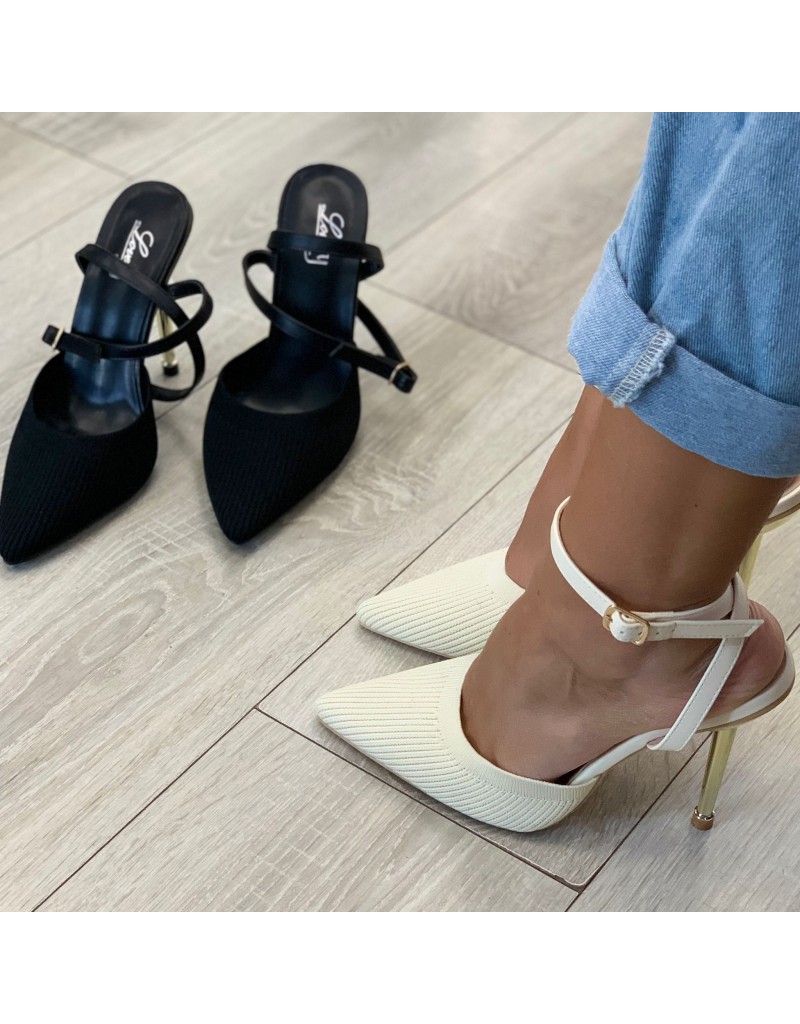 Décolleté in tessuto a costine, con cinturino in ecopelle.