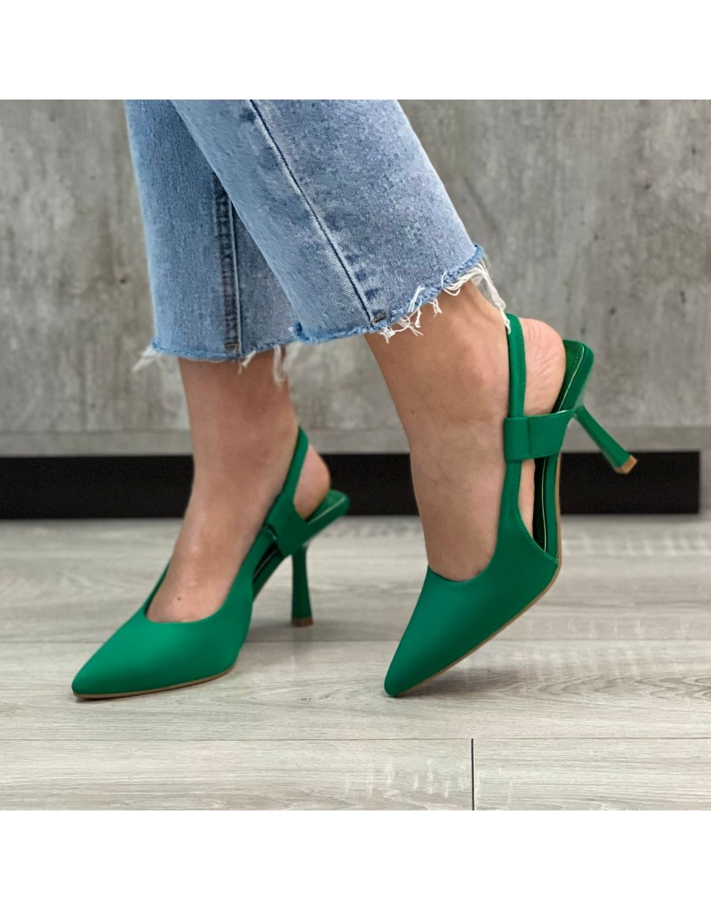 Dècolletè in tessuto a punta,con tacco alto sottile.