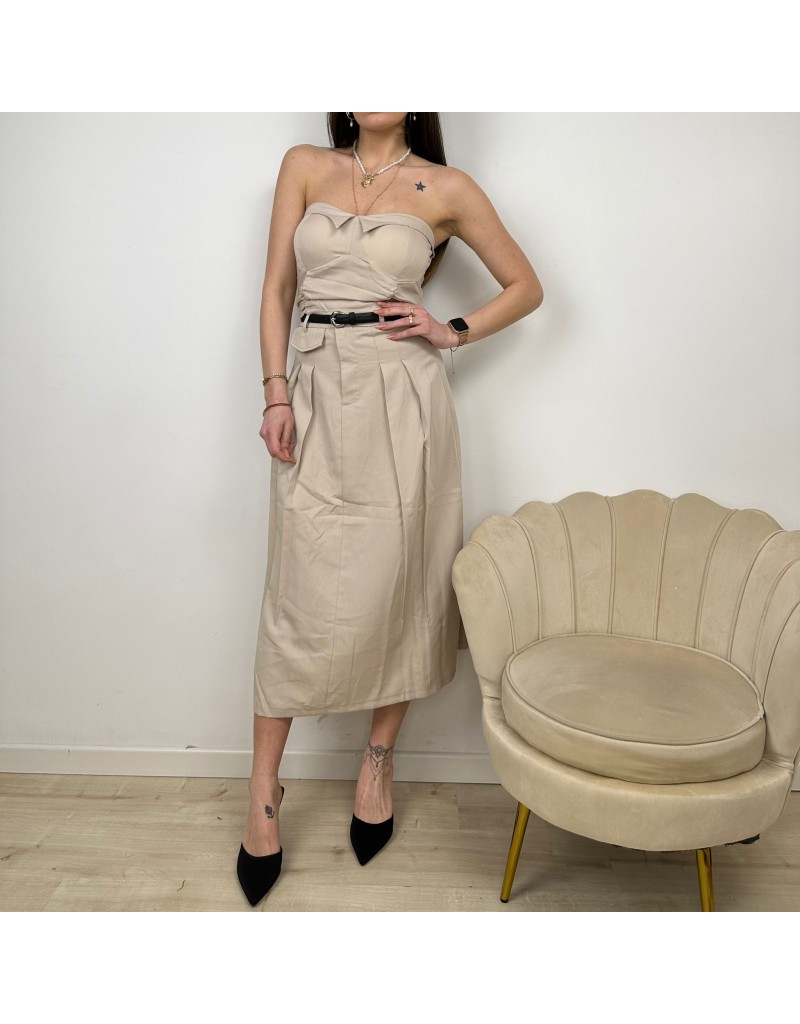 -Top senza maniche, con scollo risvoltato, e drappeggi laterali.