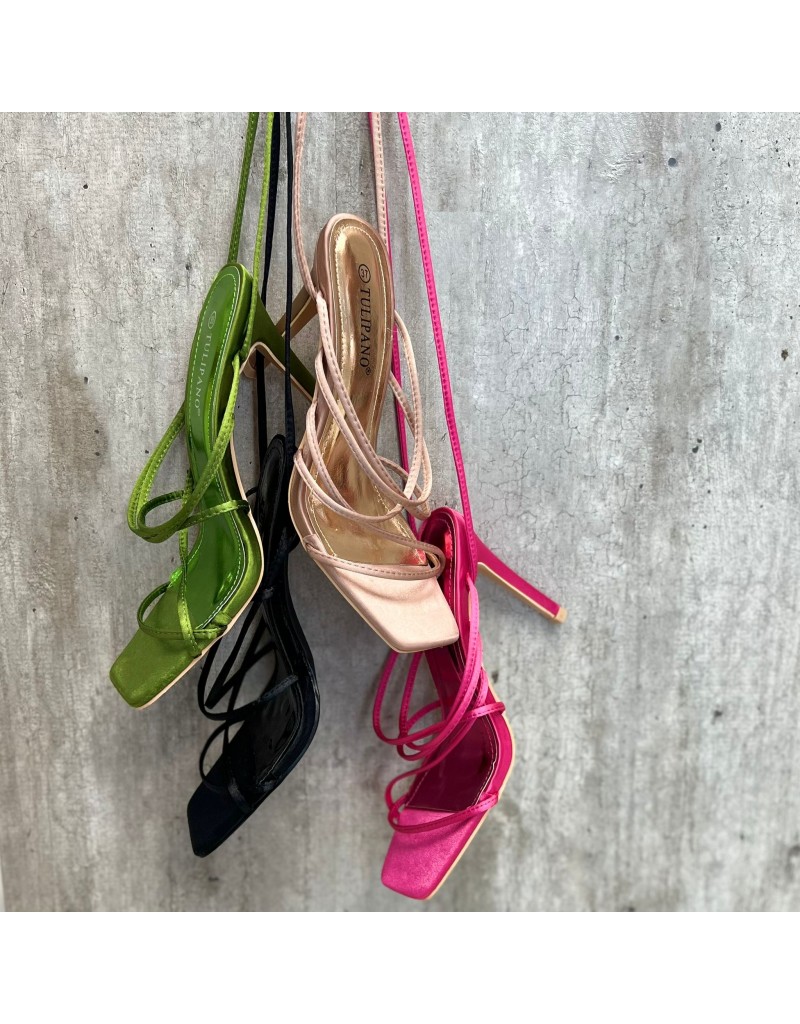 Sandalo con lacci al polpaccio, in ecopelle.
