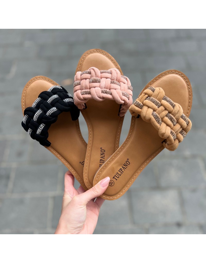 Ciabatta flat, con tomaia intrecciata, suola antiscivolo.