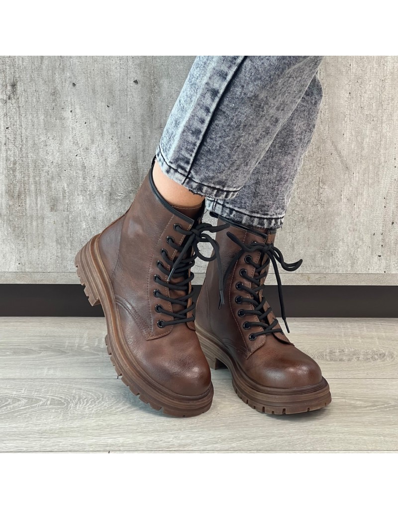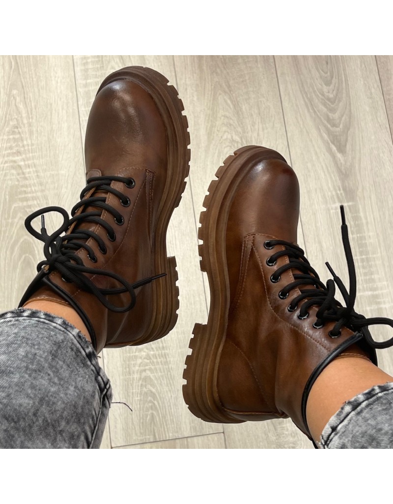 Anfibi in ecopelle, stringati. Suola gommata.