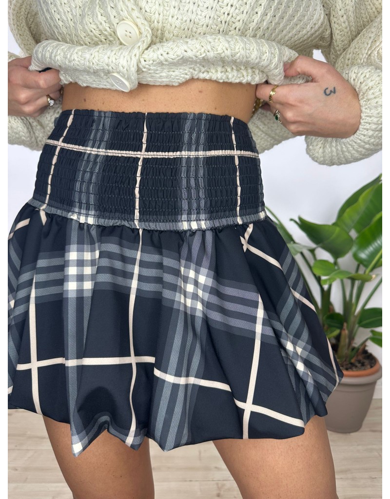 Minigonna a palloncino con elastico in vita,fantasia tartan.