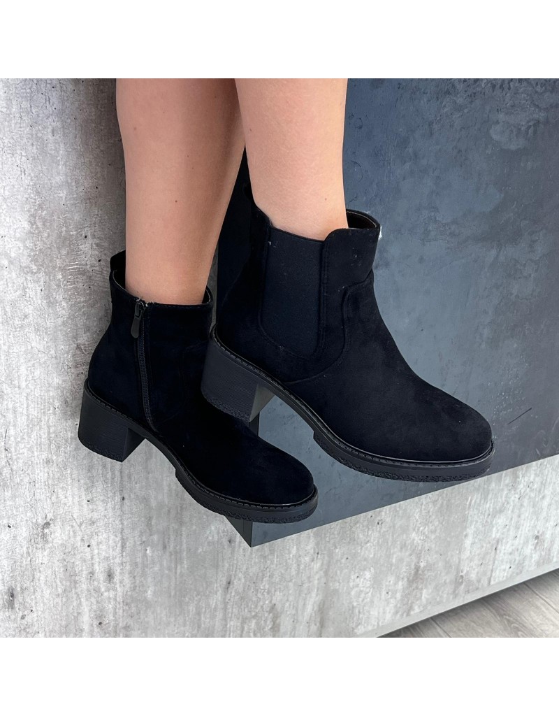 Stivaletto scamosciato,con punta arrotondata e tacco quadrato comodo.