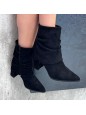 Stivali bassi in ecocamoscio a punta,con risvolto.Tacco alto comodo quadrato