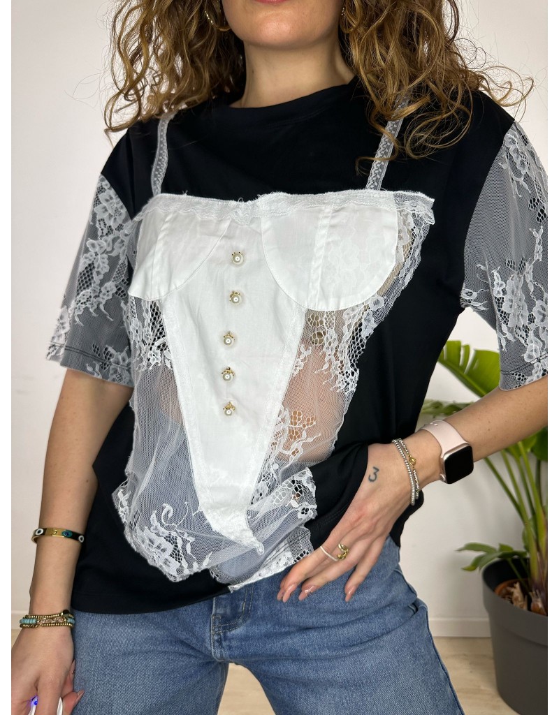 T-Shirt modello over con stampa e trasparenza sulla parte frontale.