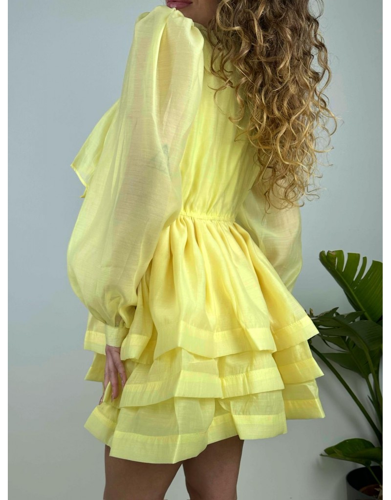 Dress corto elegante a balze con manica lunga velata.