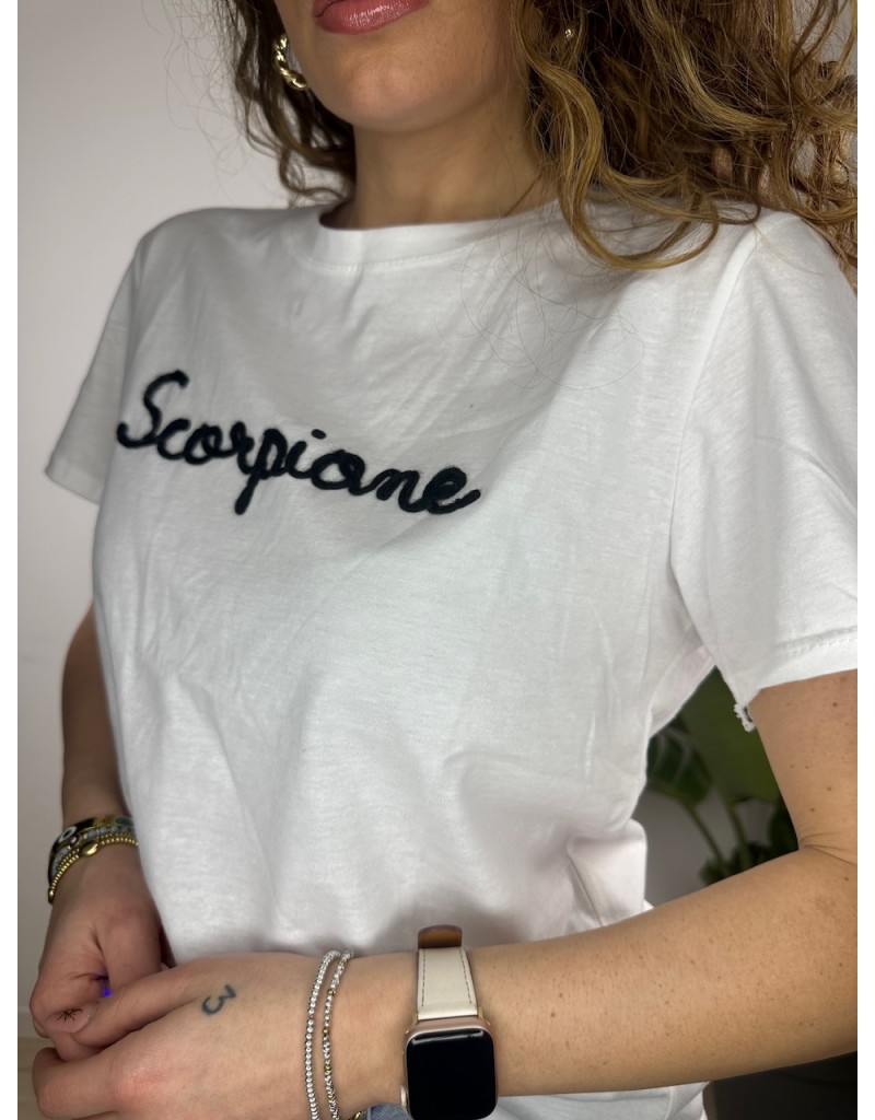 T-Shirt semplice con scritta ricamata.