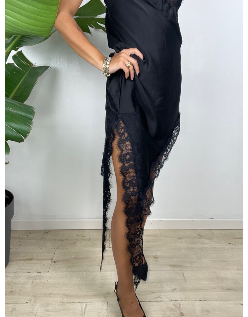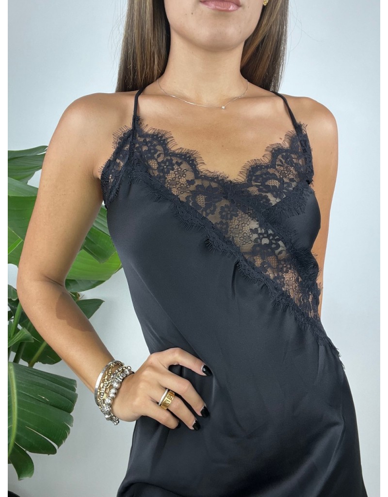 Vestito satin con bordo in pizzo. Lunghezza media-corto.