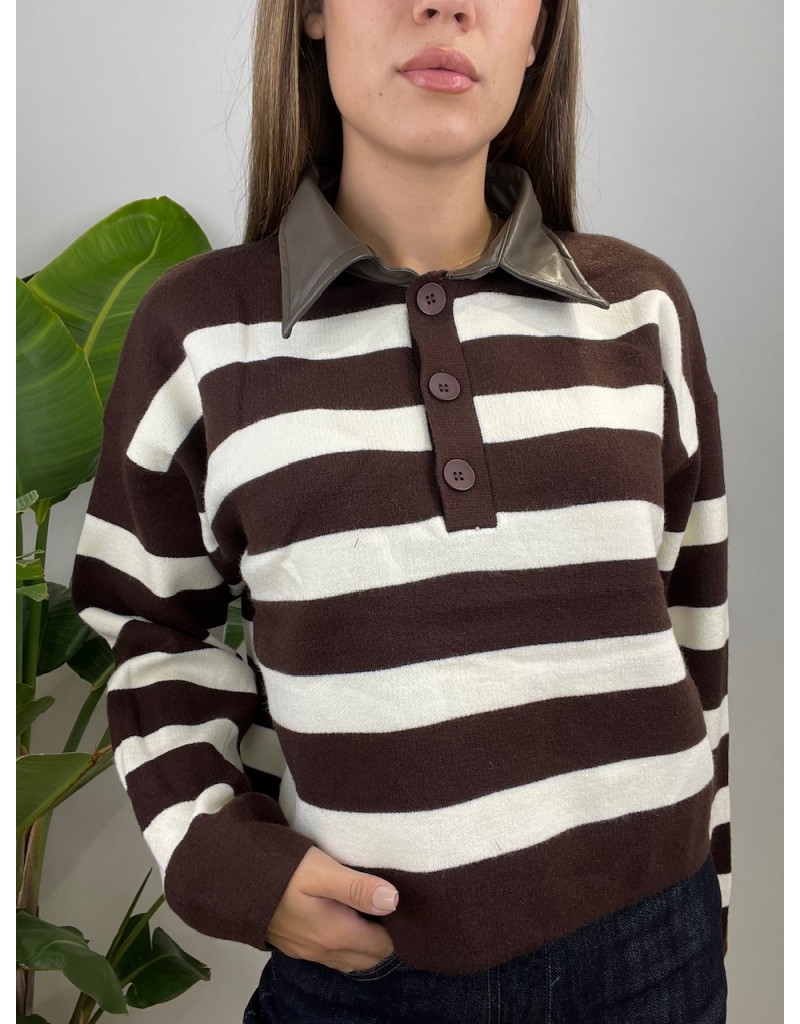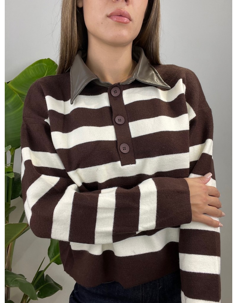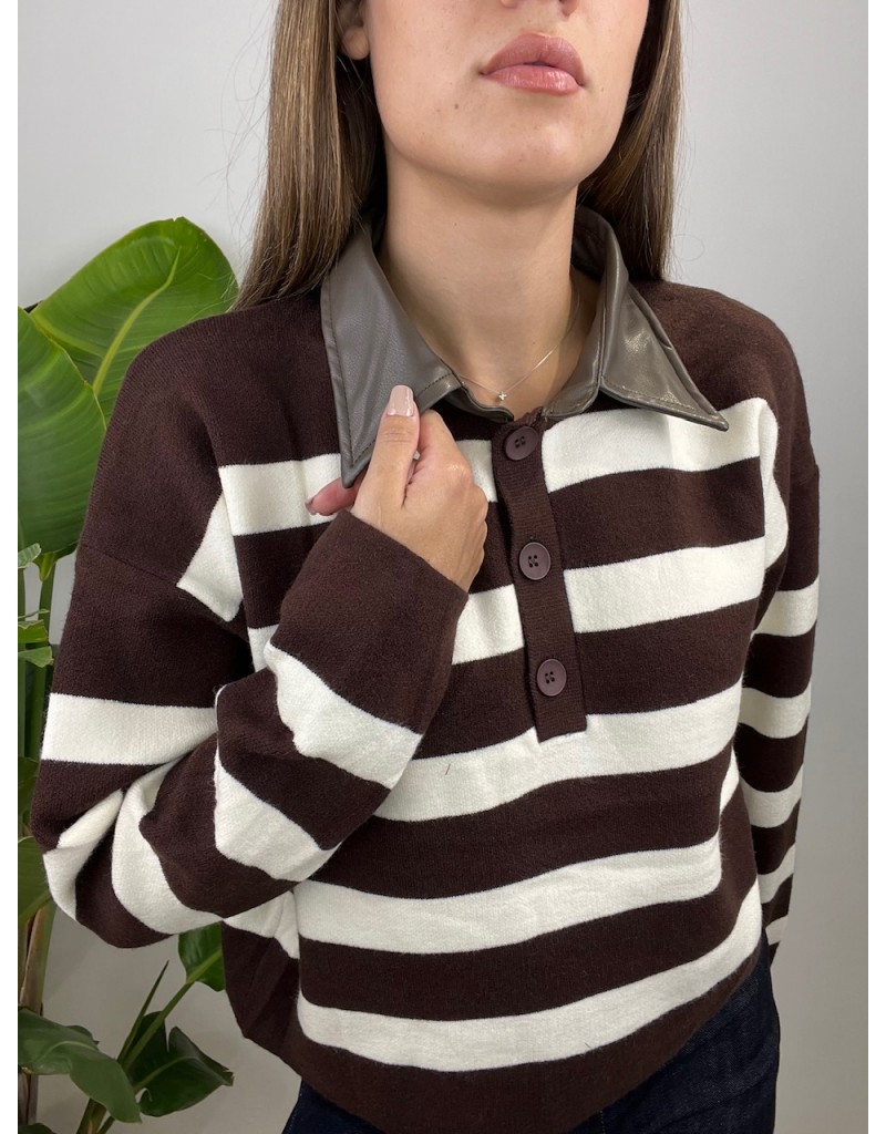 Pullover modello polo con colletto in ecopelle.