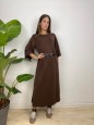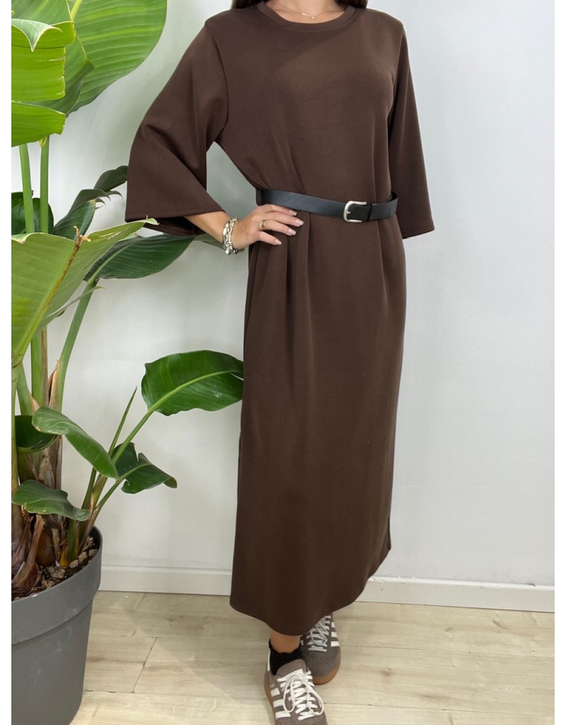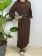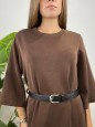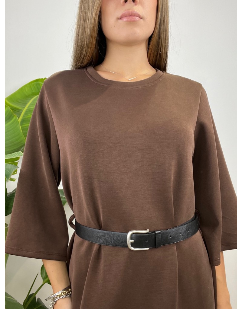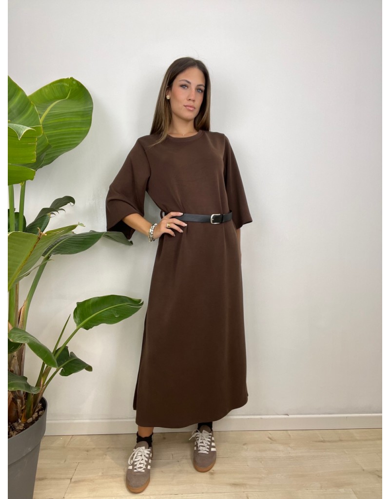 Vestito tinta unita con cinturino e manica 3/4.