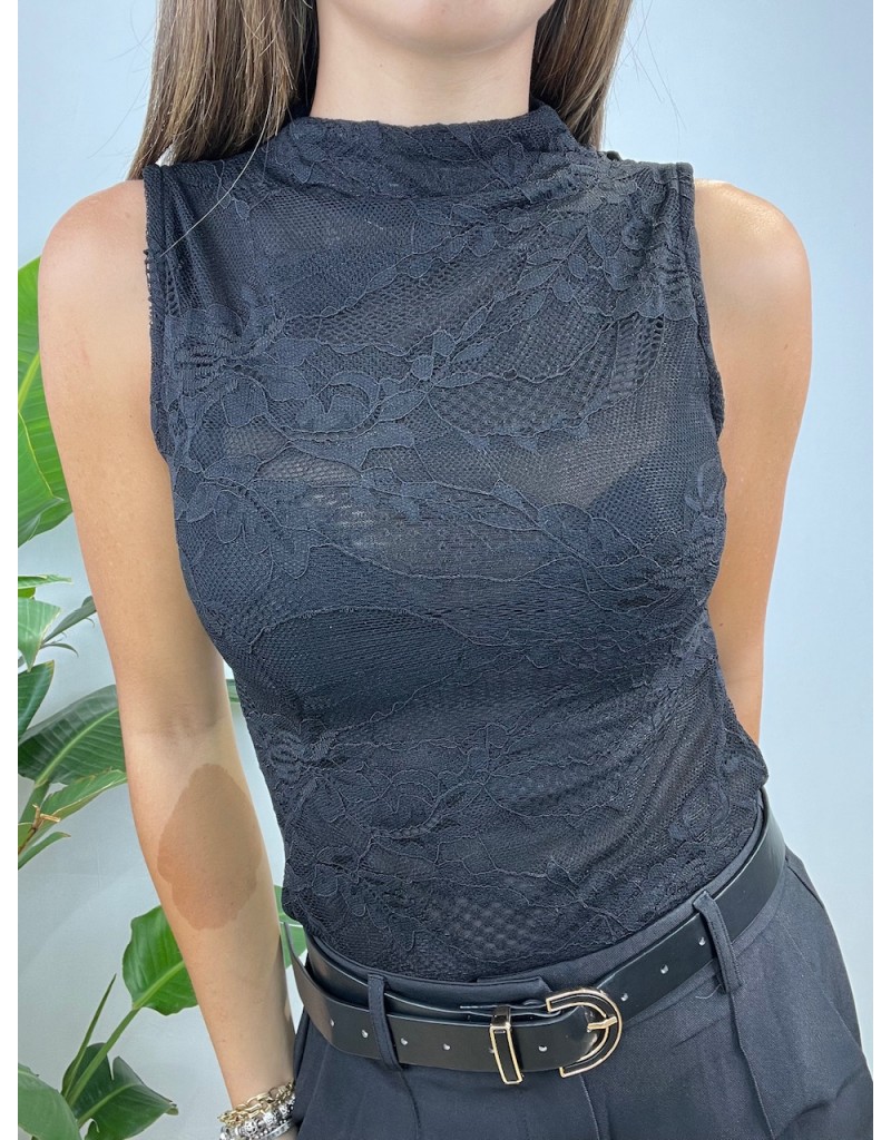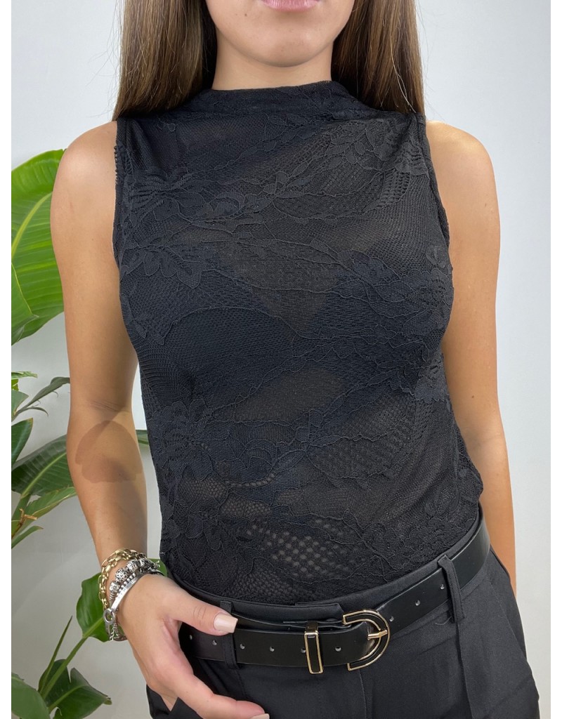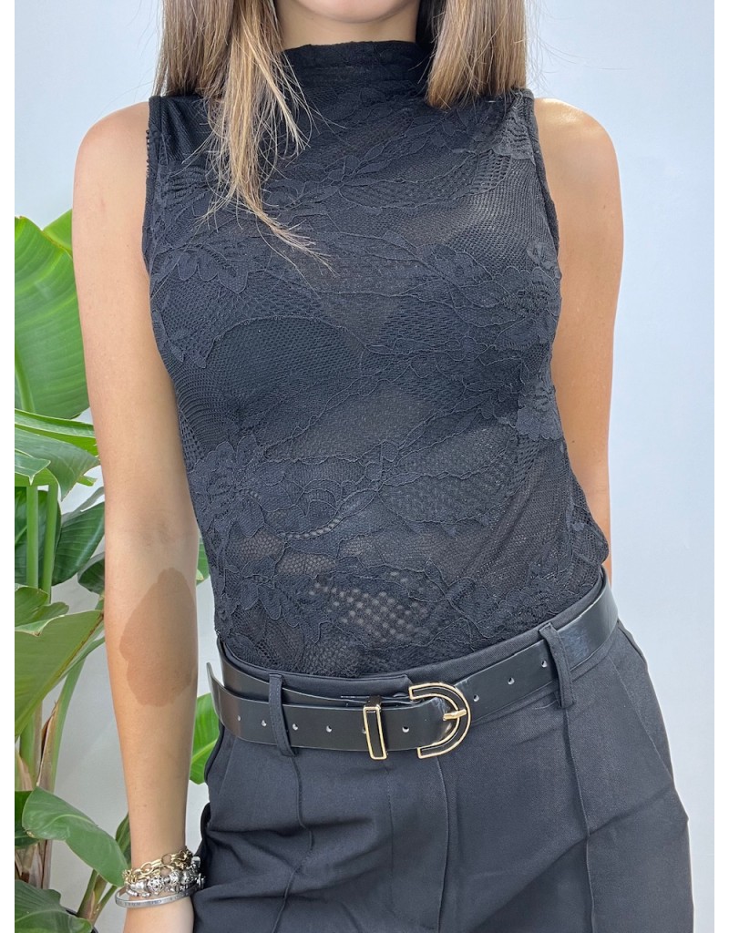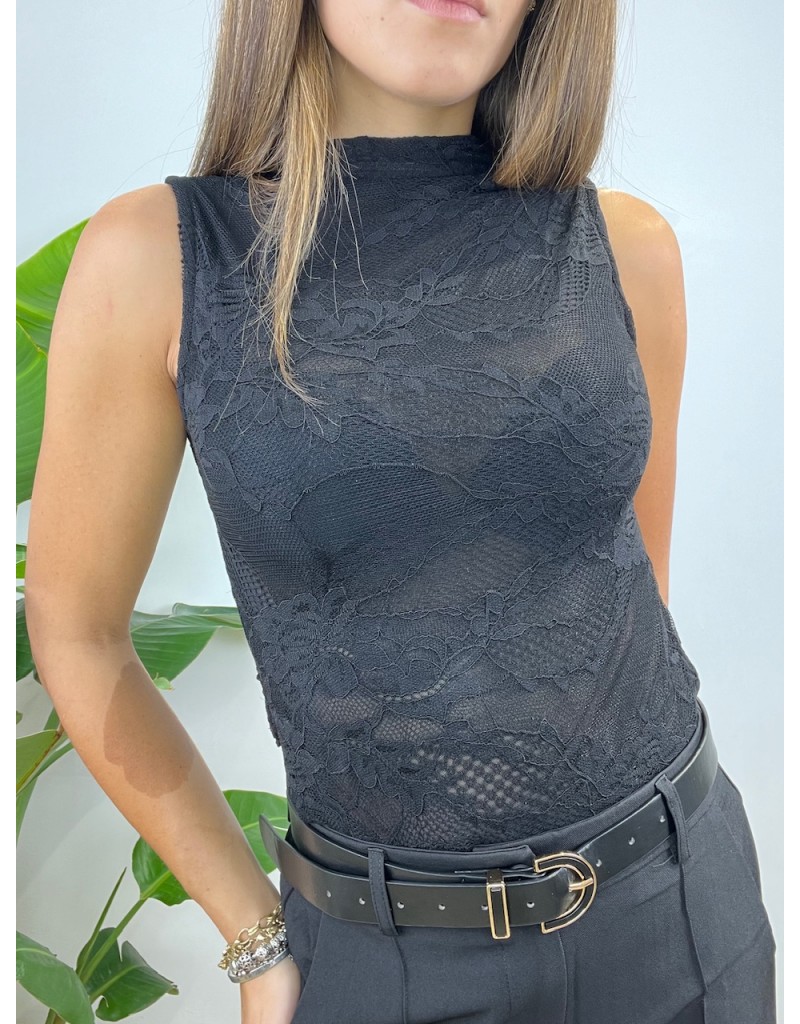 Body a giro manica in pizzo.