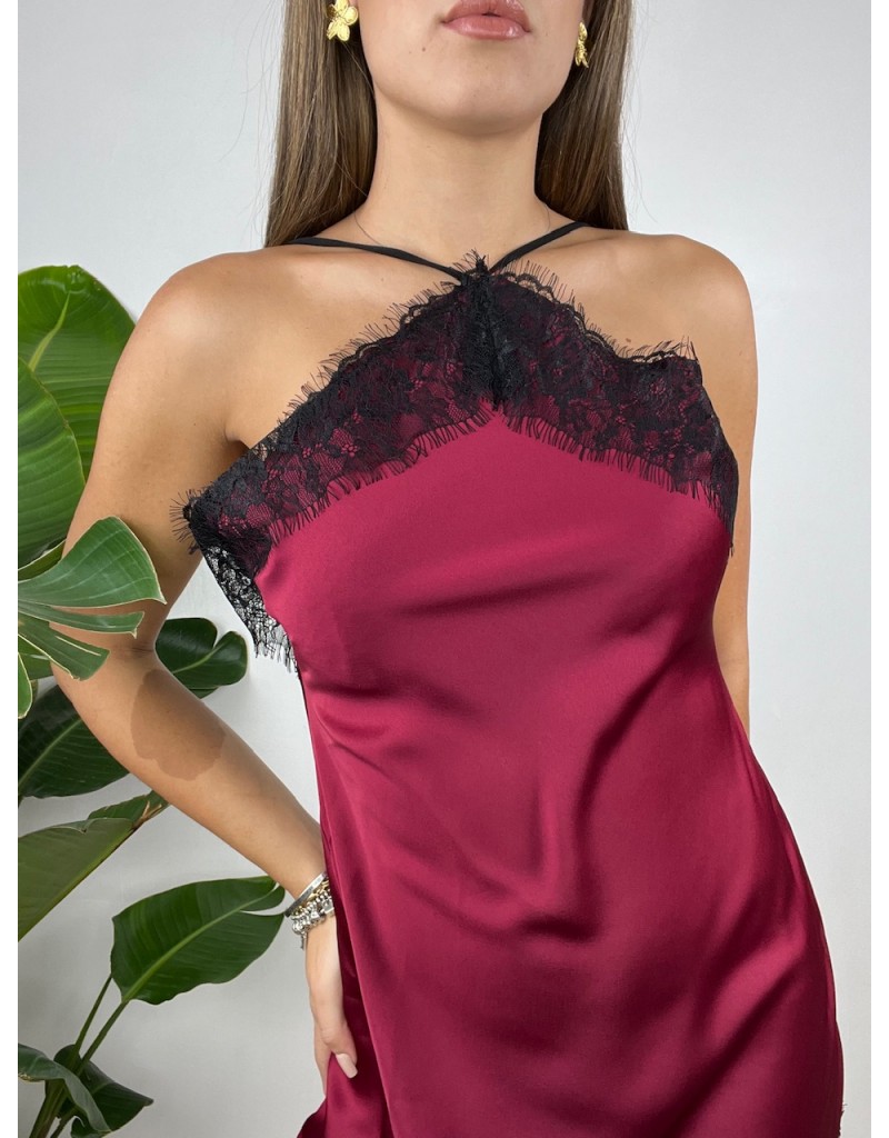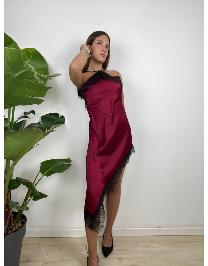 Vestito in raso con pizzo.