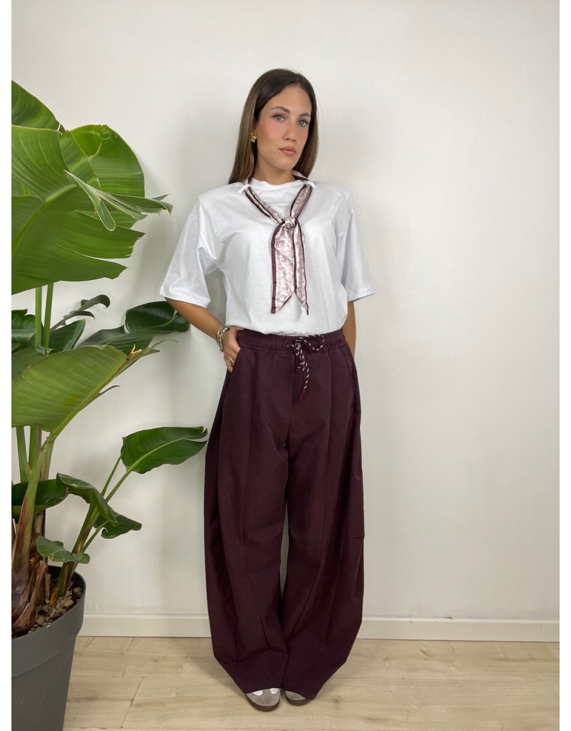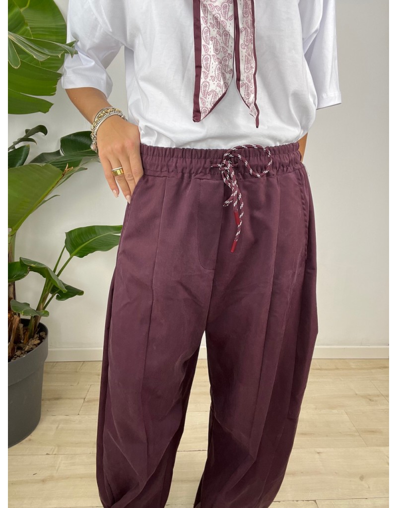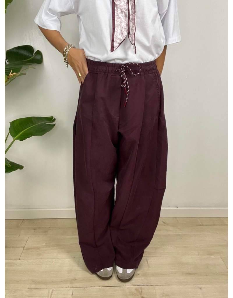 Pantaloni modello balloons con molla in vita.