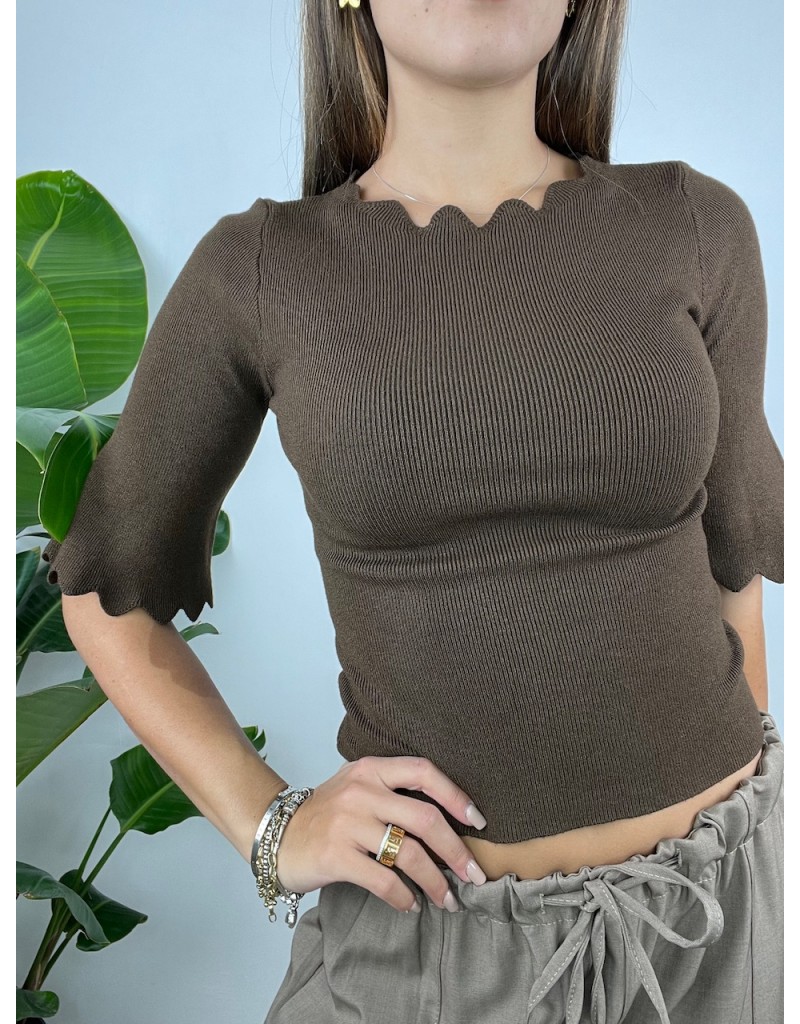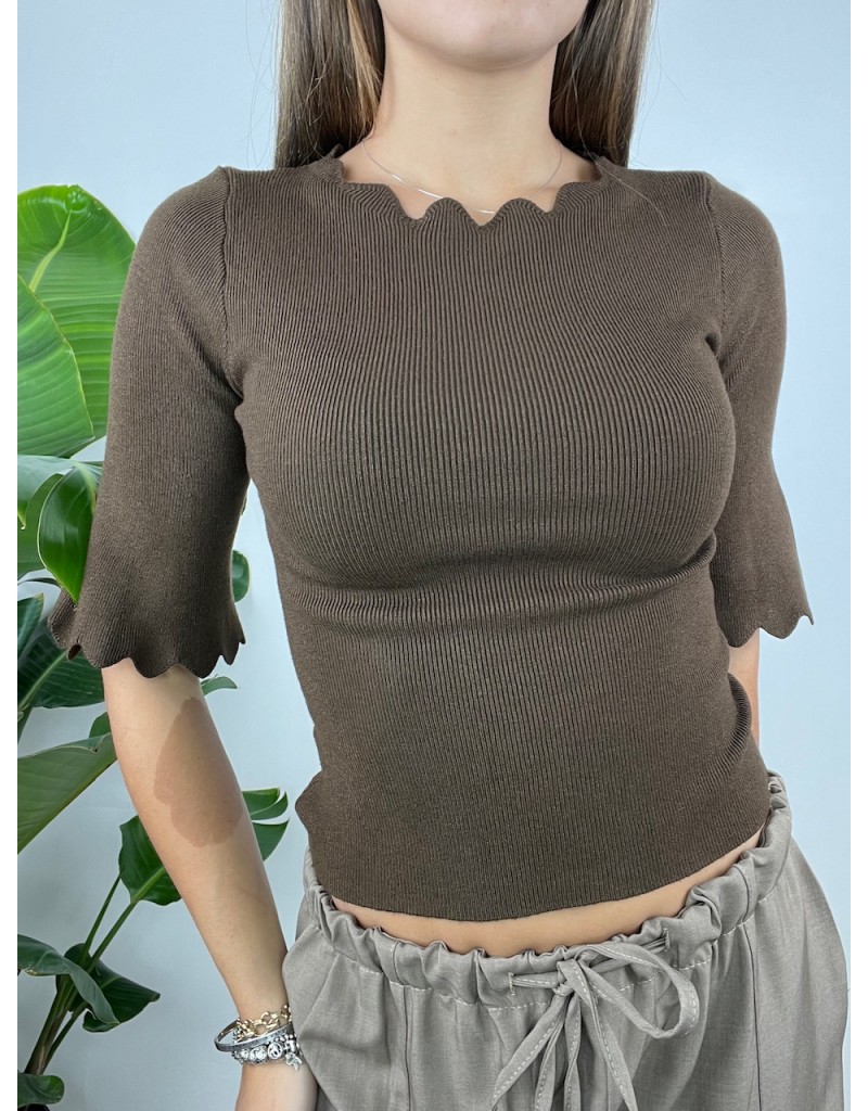 Maglia manica 3/4 con bordo ondulato.