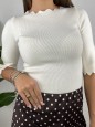 POLO CROP FIONY NERA RIGHE BIANCHE