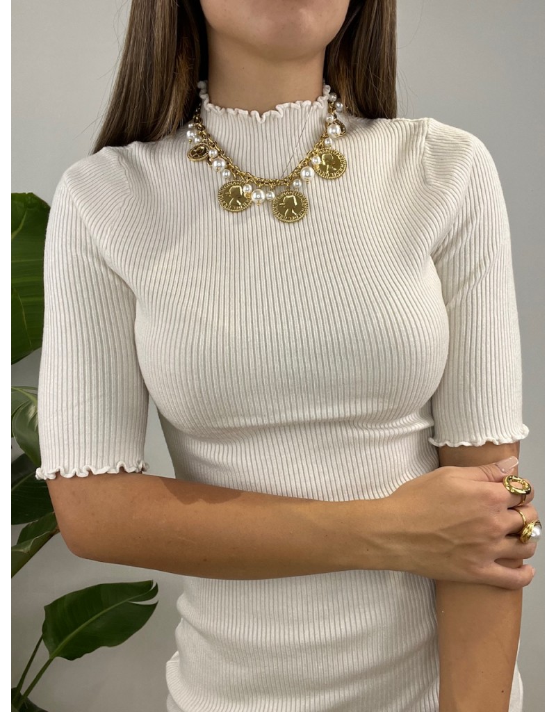 Dress a costine con manica corta e mezzo collo.
