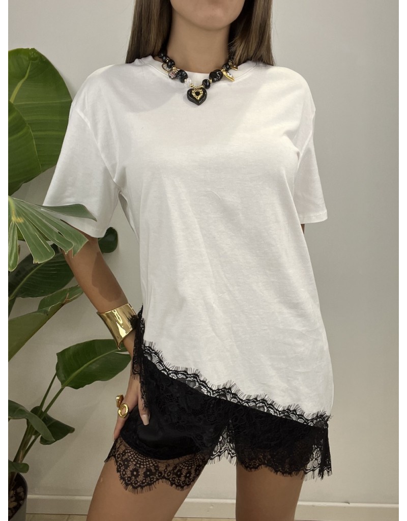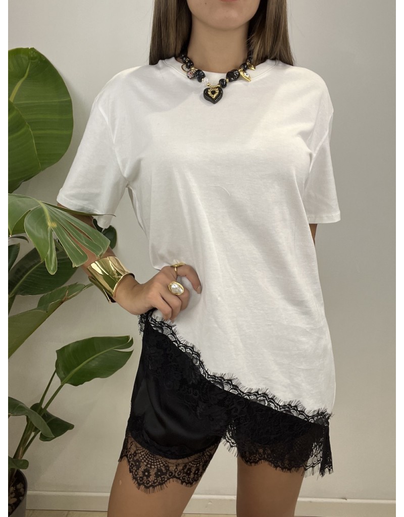 T-Shirt con pizzo trasversale.