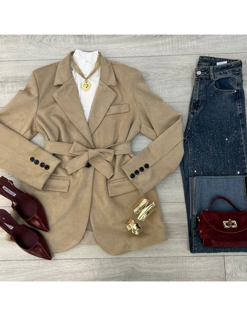 Blazer in ecocamoscio con cintura.