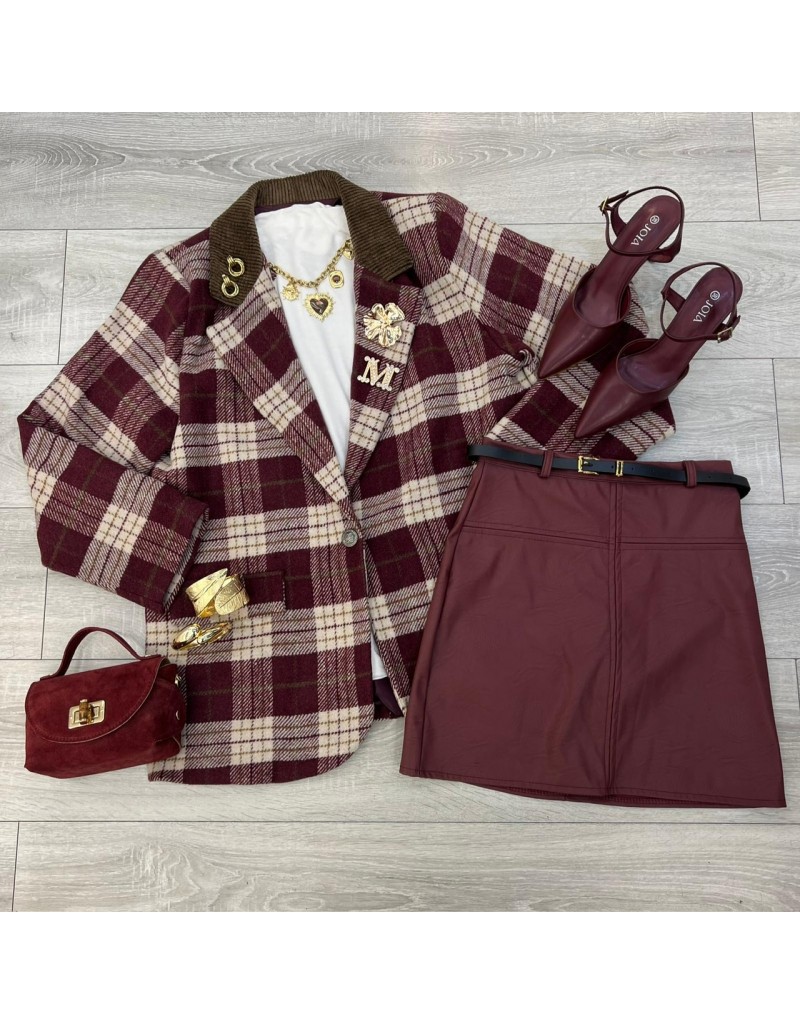 Blazer a fantasia con spilla e collo in velluto millerighe.