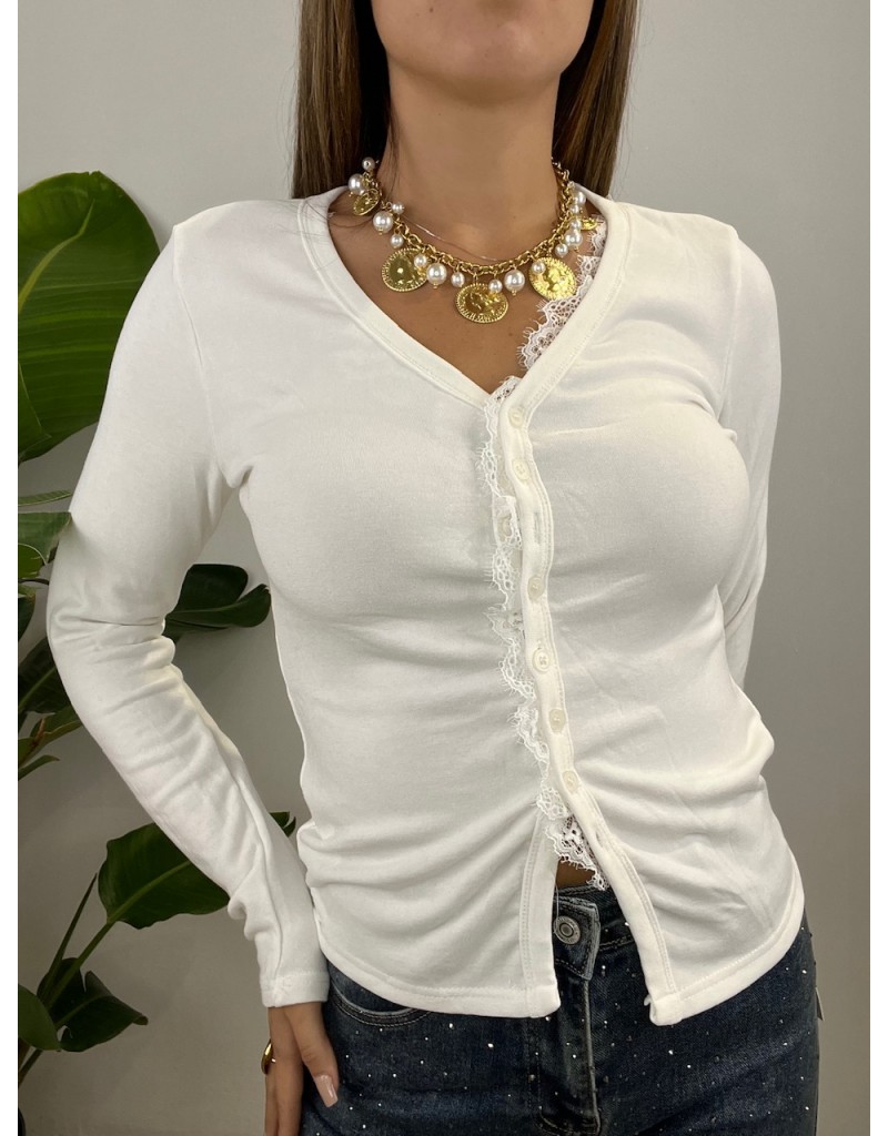 Maglia semplice con maniche lunghe e bottoncini e merletto.