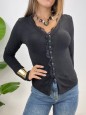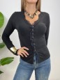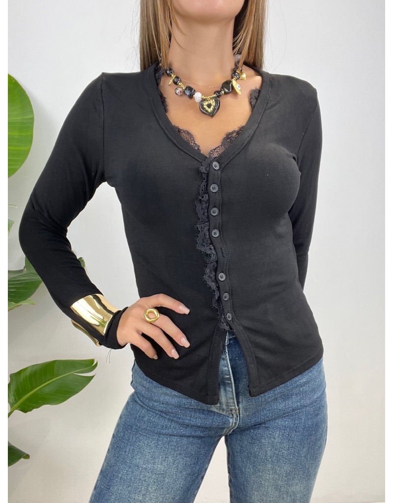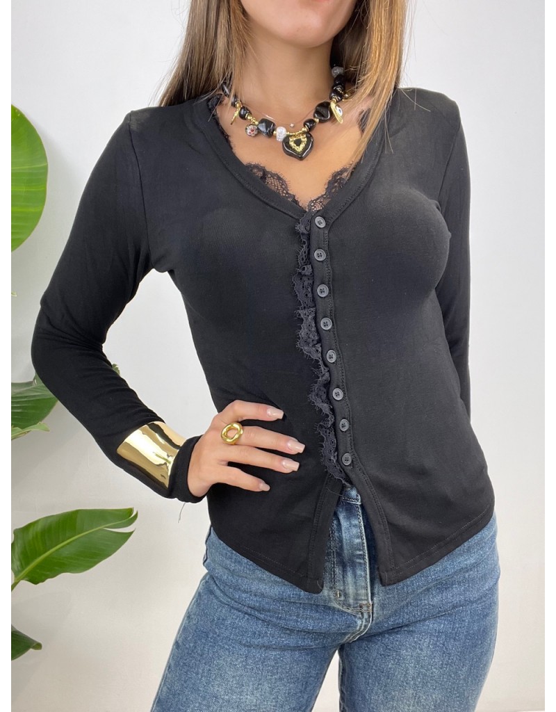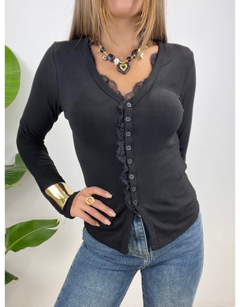 Maglia semplice con maniche lunghe e bottoncini e merletto.