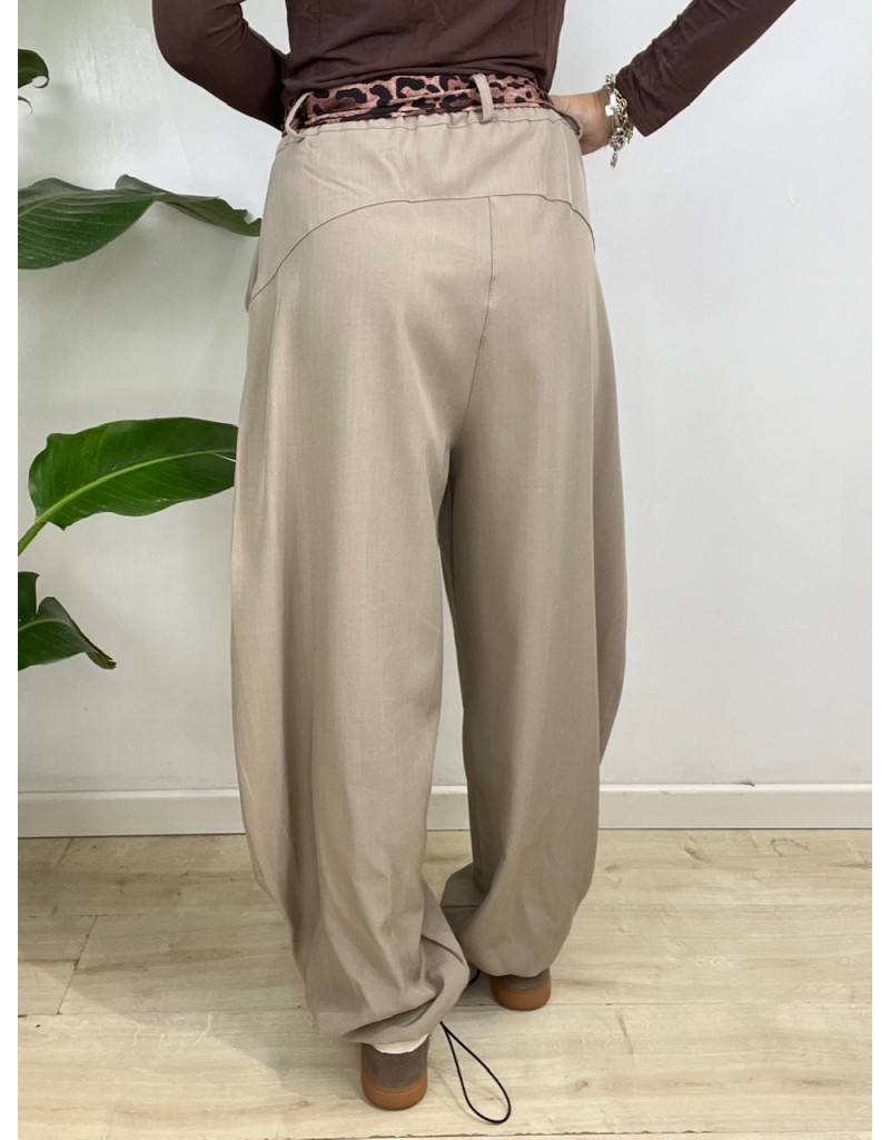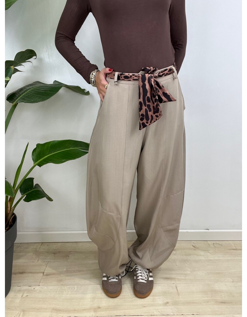 Pantaloni con foulard modello balloons e coulisse alle caviglie.