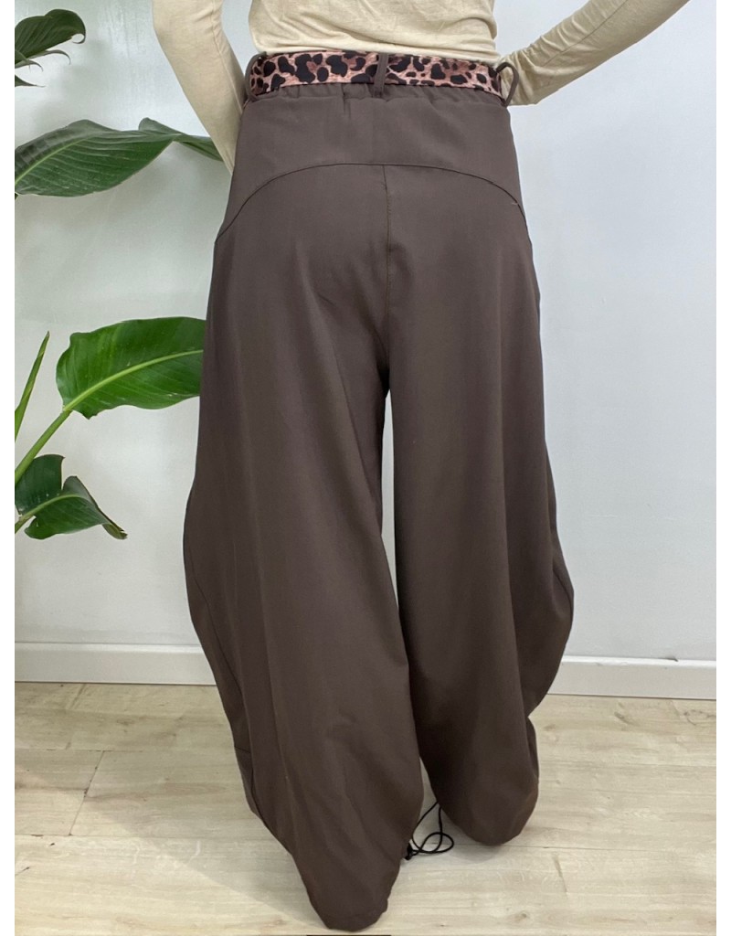 Pantaloni con foulard modello balloons e coulisse alle caviglie.