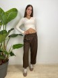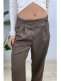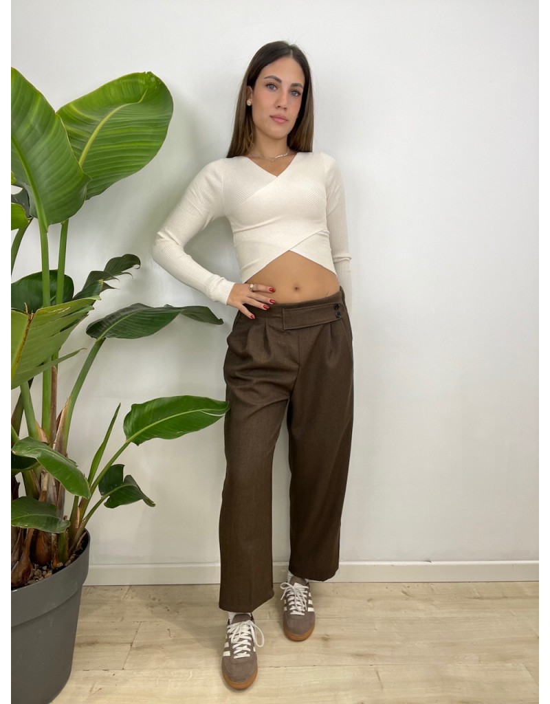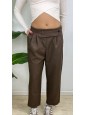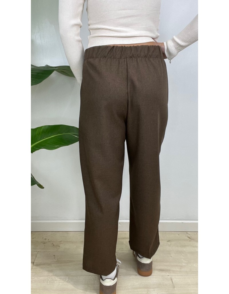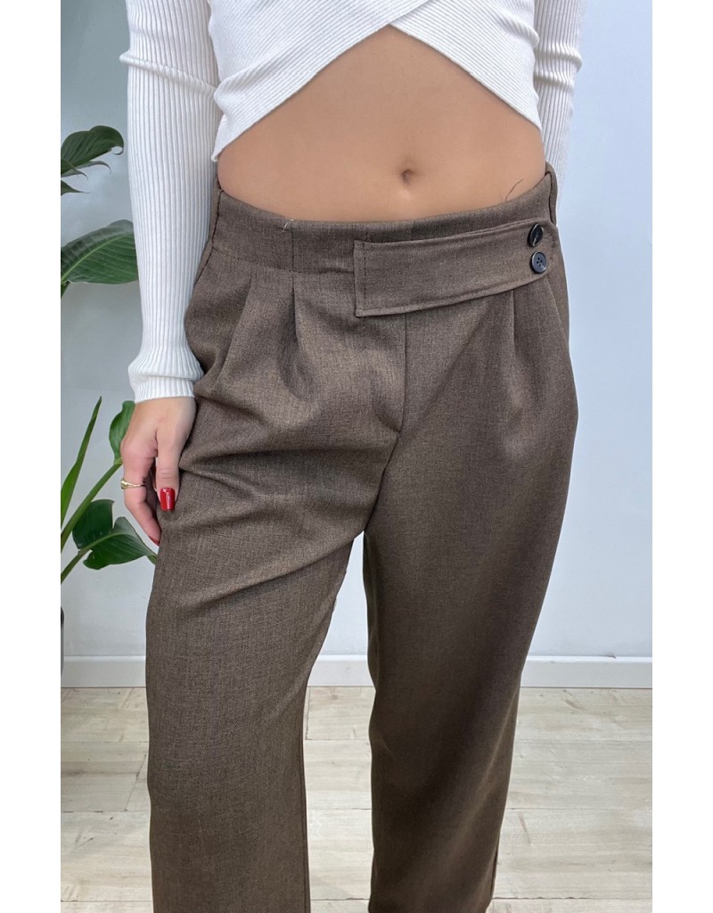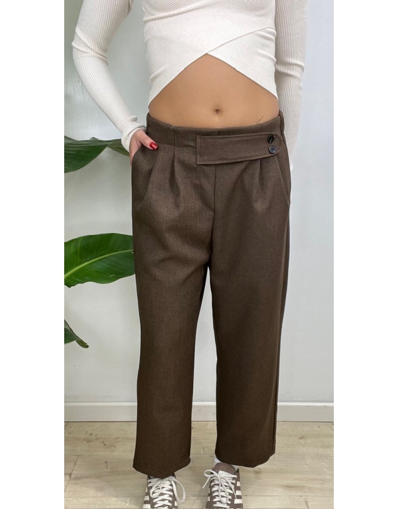 Pantaloni con gamba morbida e doppio bottone e molla posteriore.
