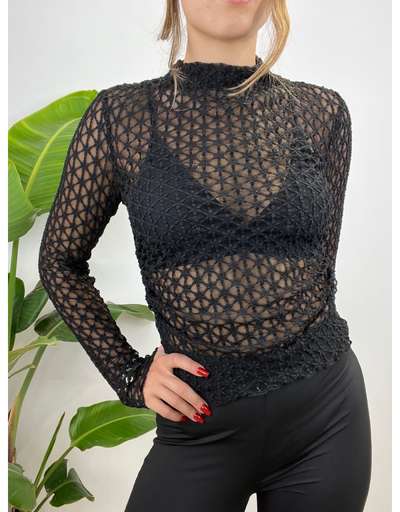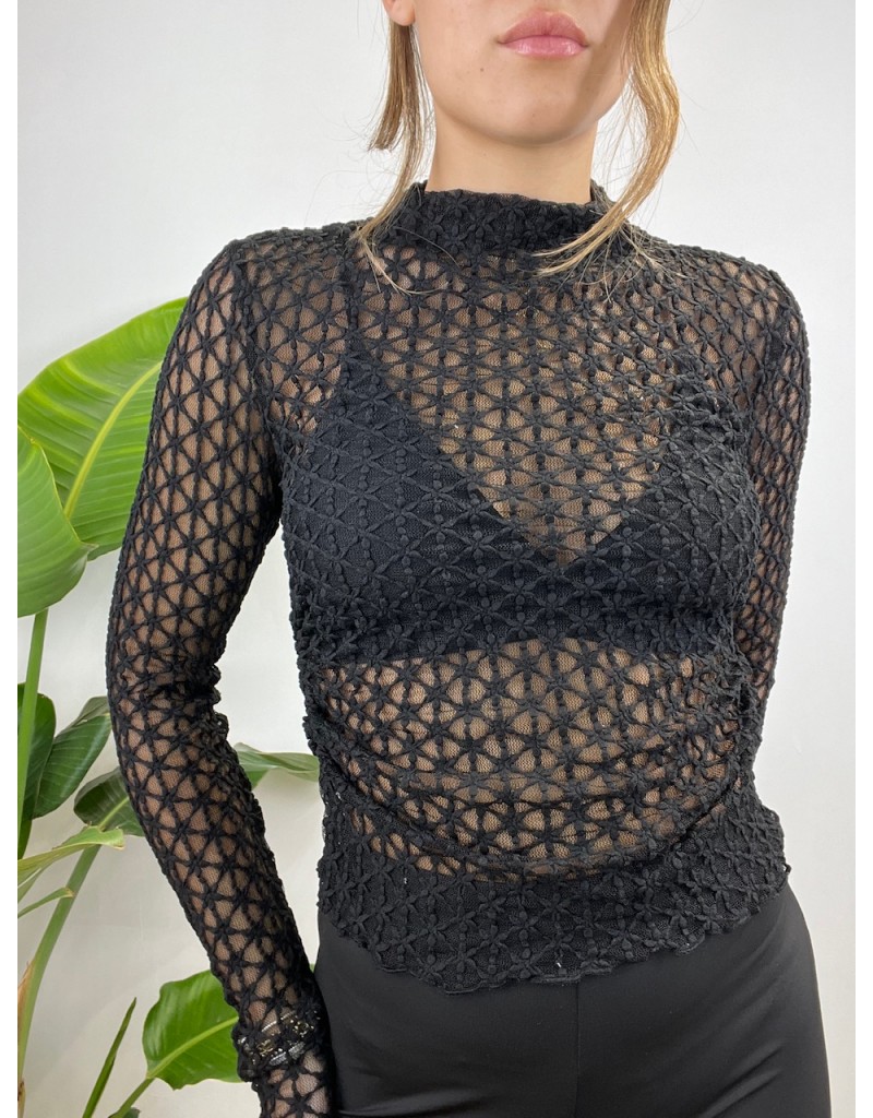 Maglia in total pizzo con un po' di colletto e polsino particolare.