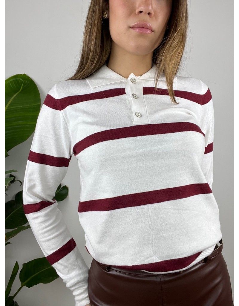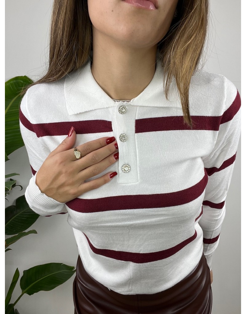 pullover mdello polo a righe con bottone gioiello.