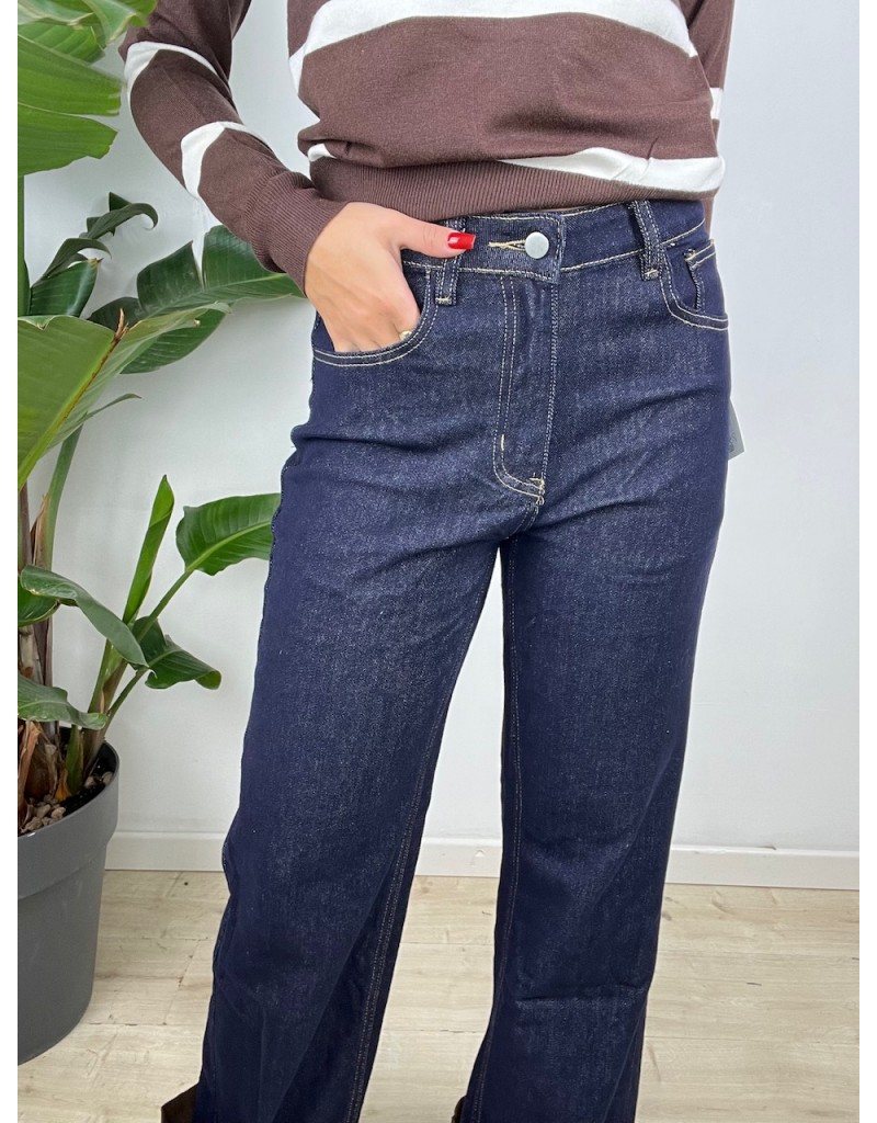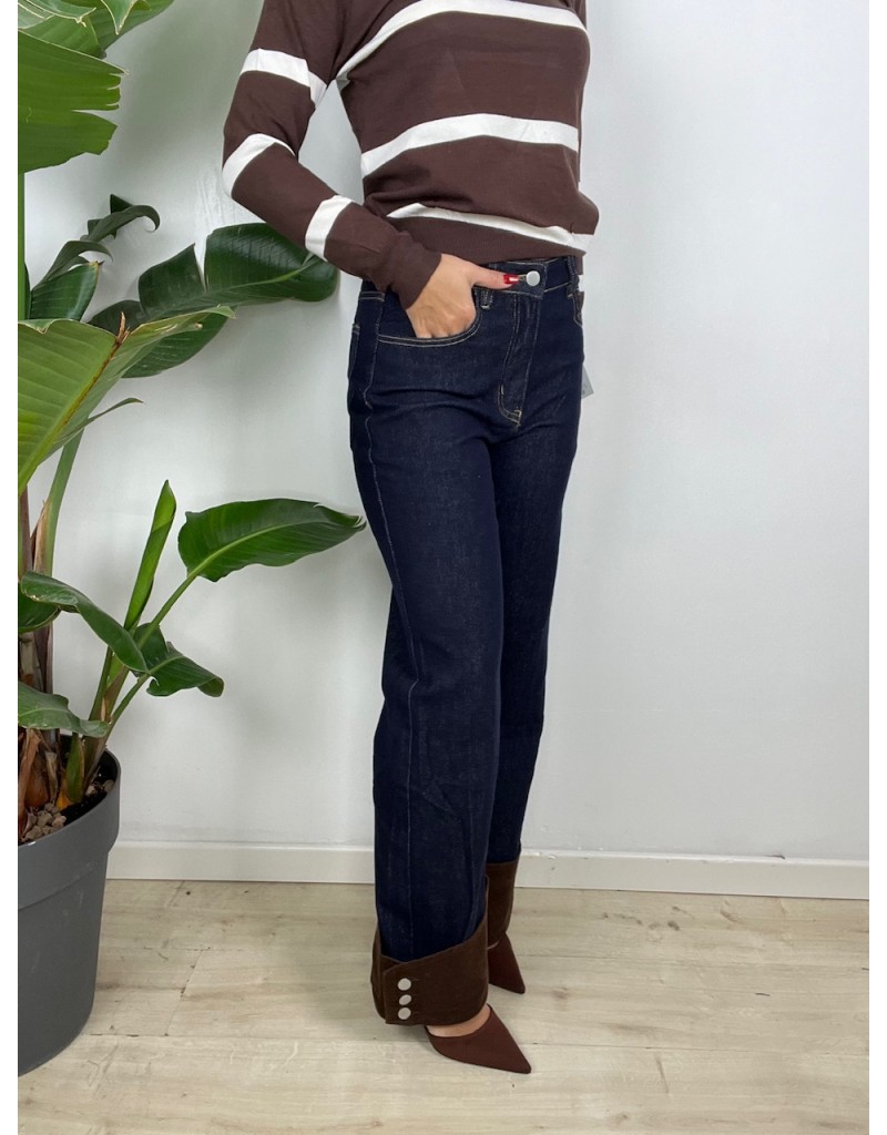 Jeans con risvolto in velluto marrone. Modello balloon Fit.