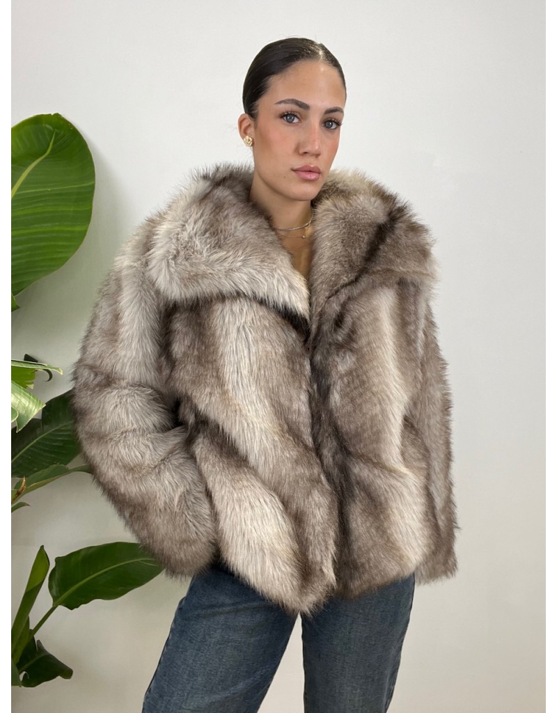 Ecopelliccia con venatura a contrasto interna e pelo medio.