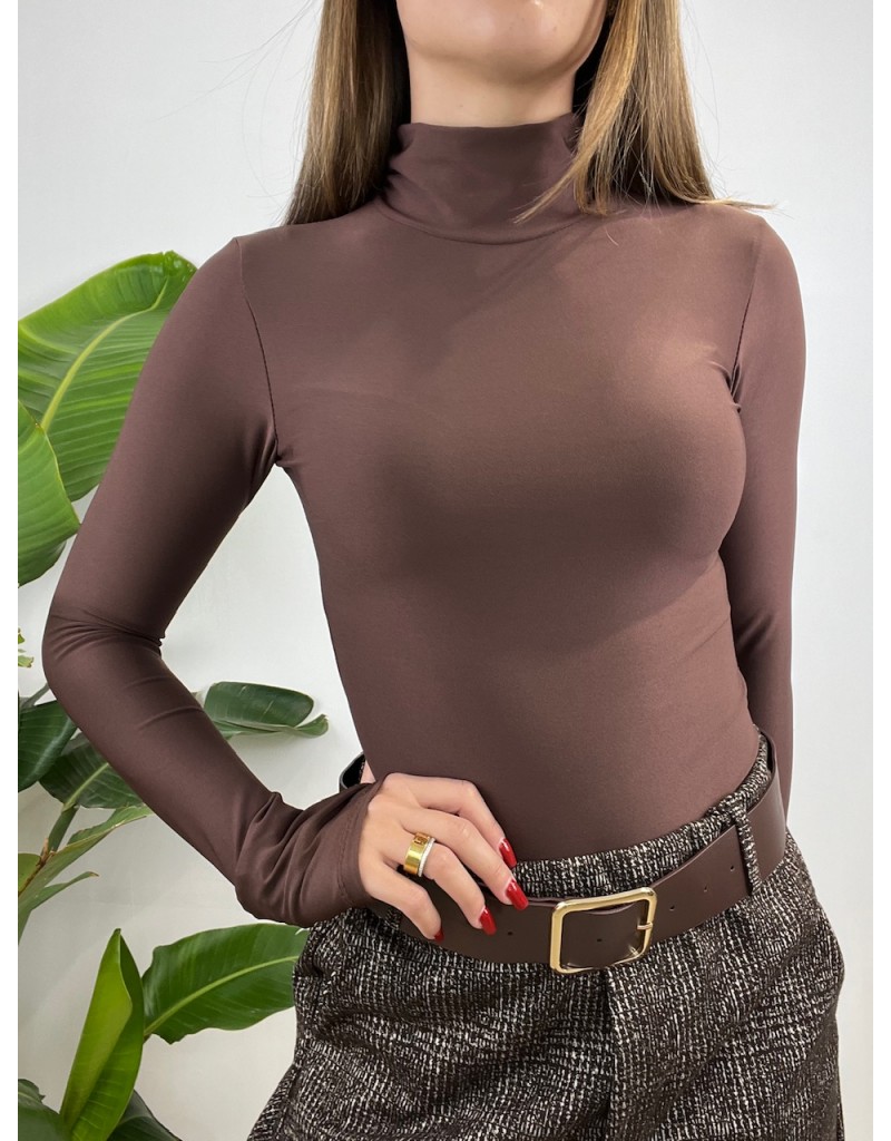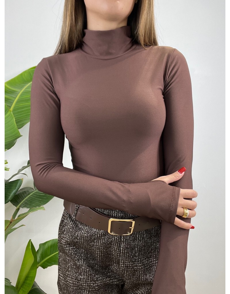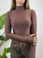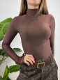 Body in lycra con collo alto arricciato.