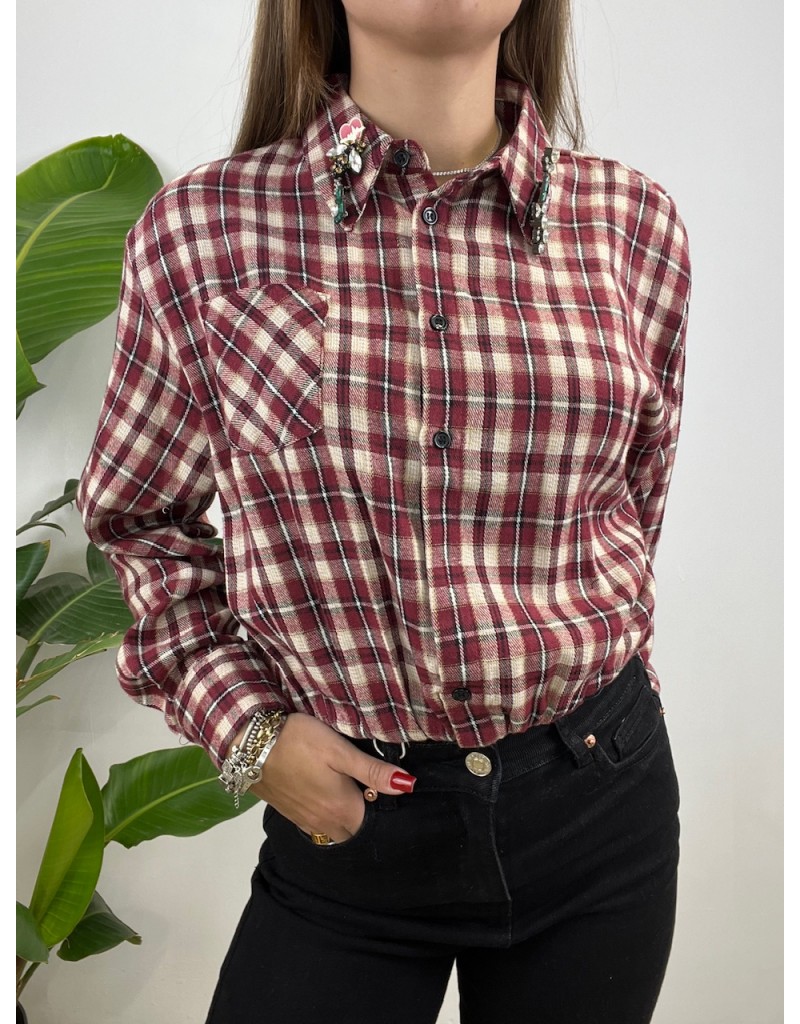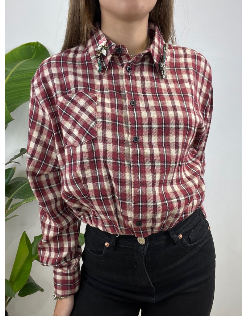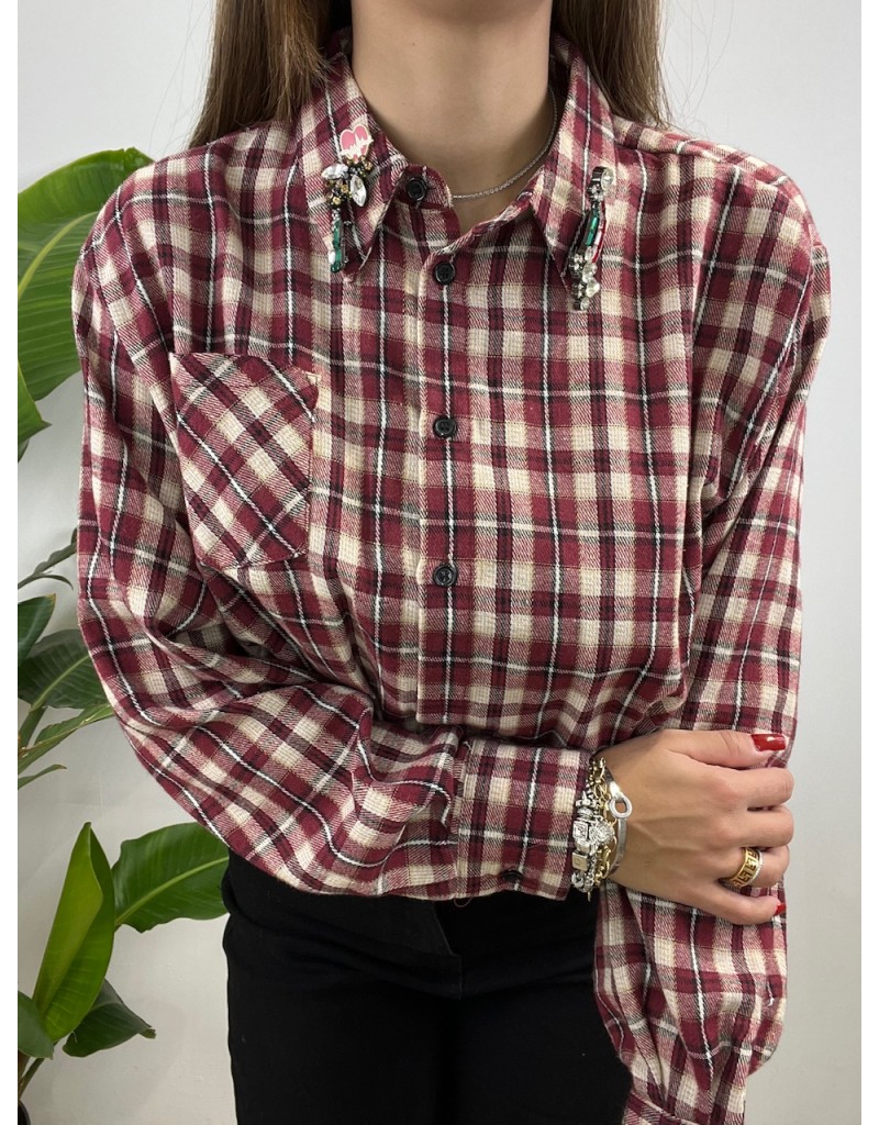 Camicia modello crop con applicazioni al colletto, fantasia quadretti.