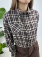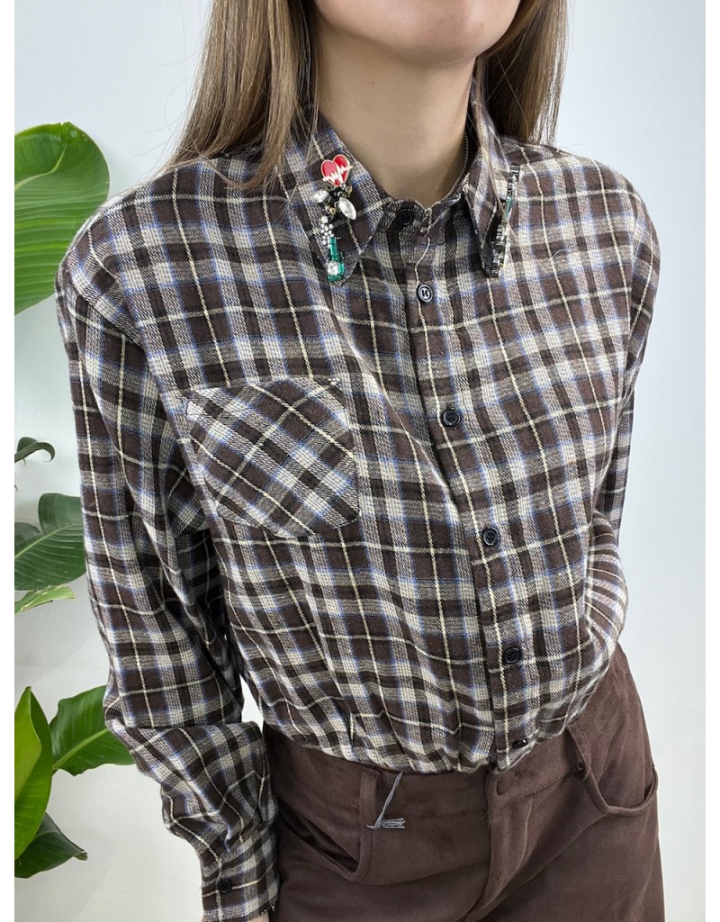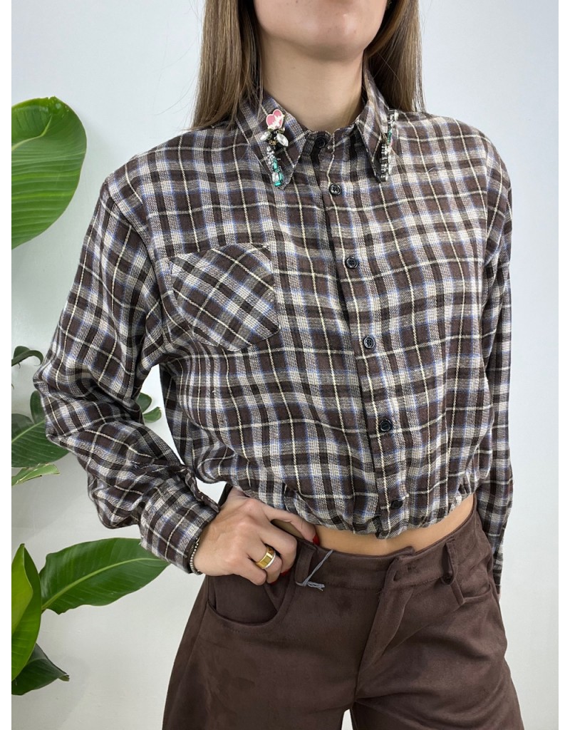 Camicia modello crop con applicazioni al colletto, fantasia quadretti.