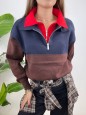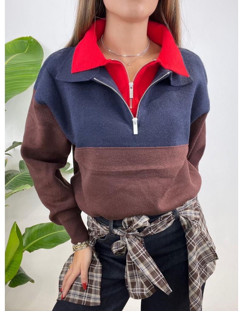 Pullover modello polo con doppio colletto a colore contrasto.