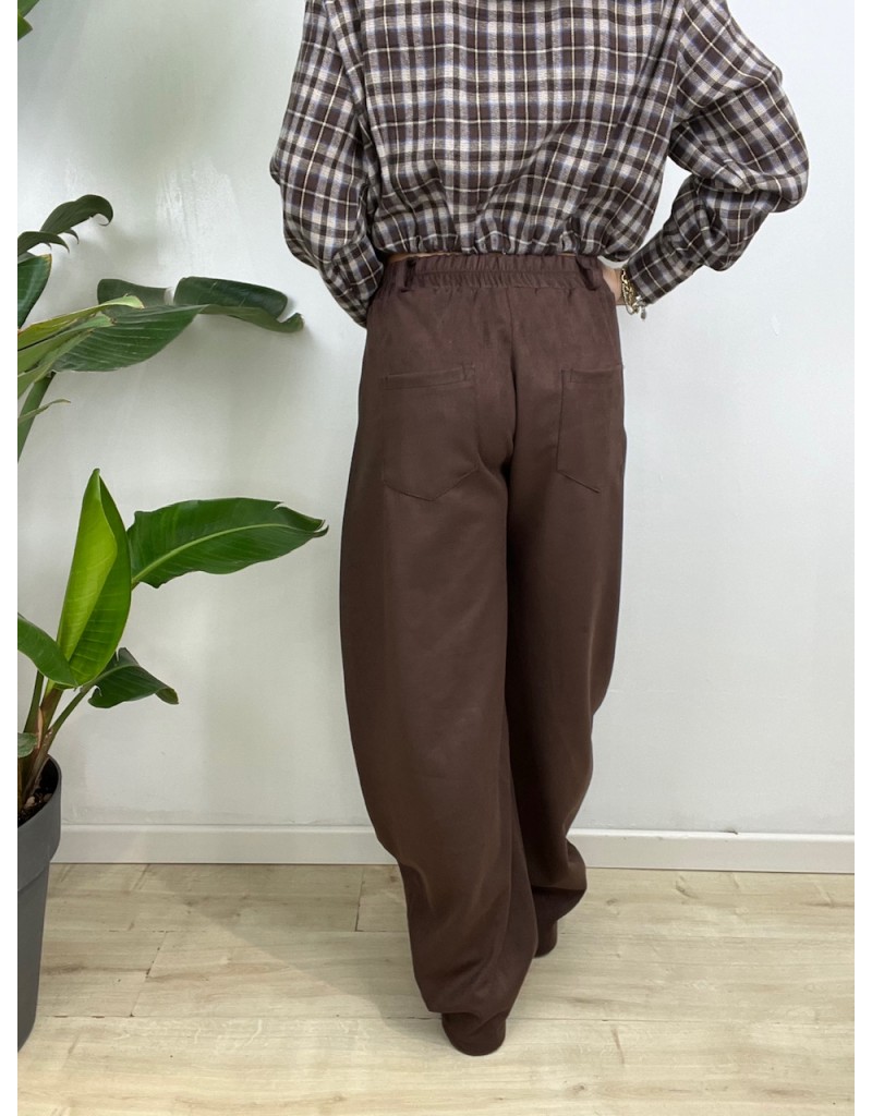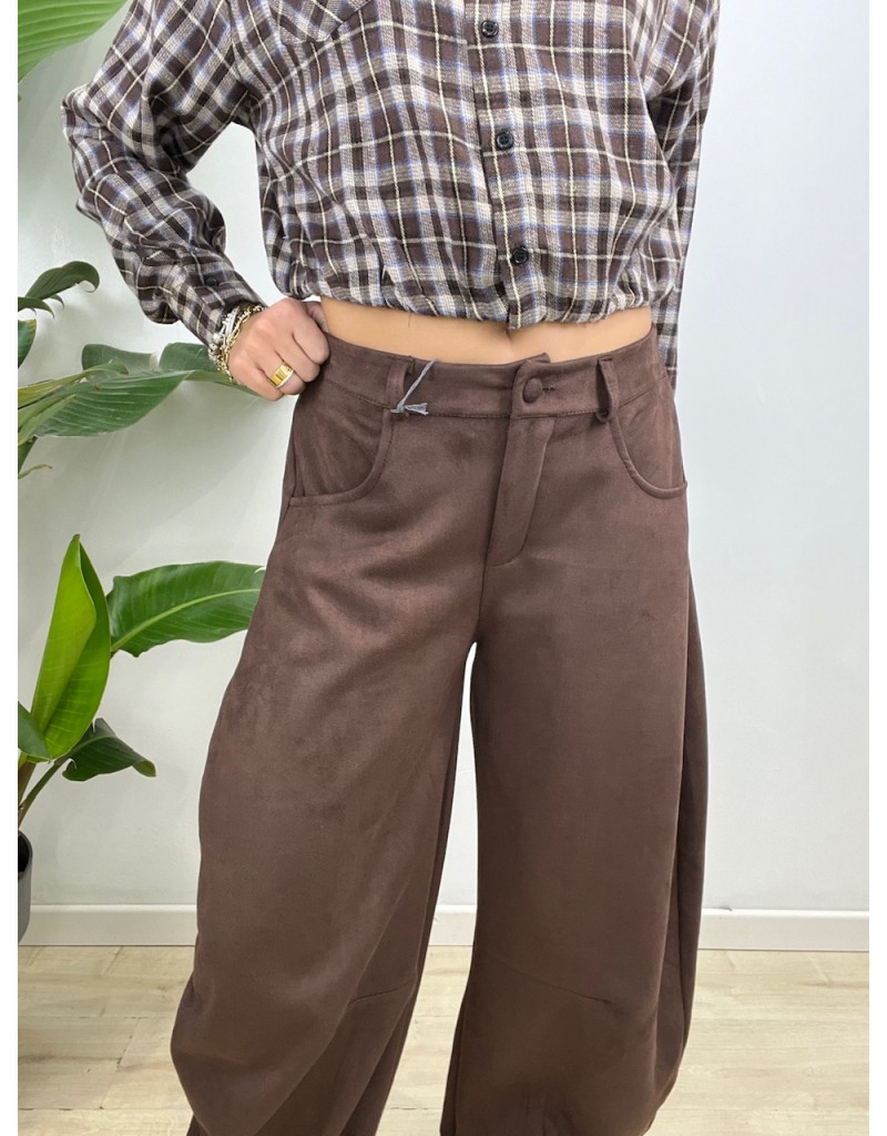 Pantaloni modello balloons in ecocamoscio semplice.