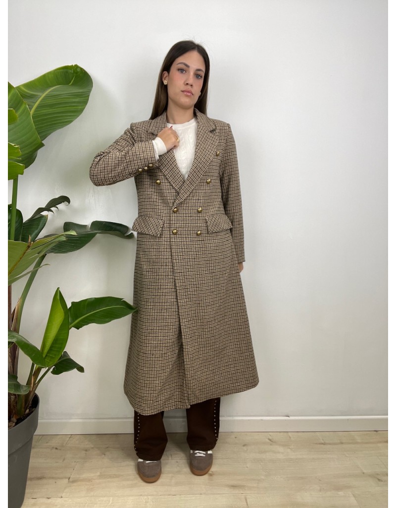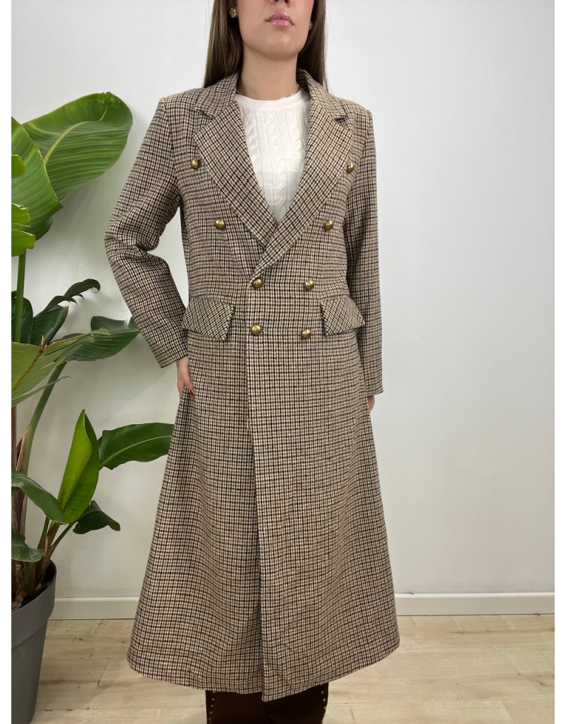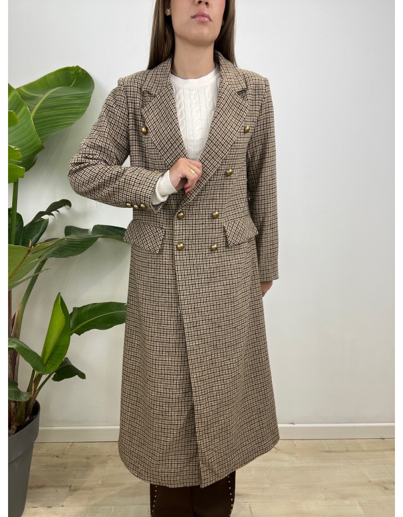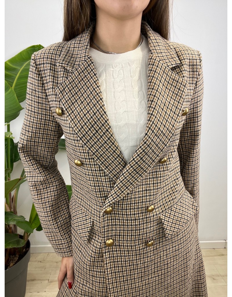 Cappotto modello doppio petto in micro fantasia.