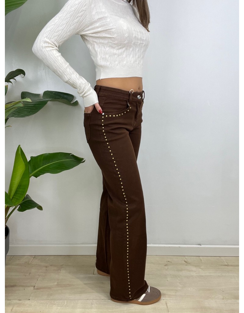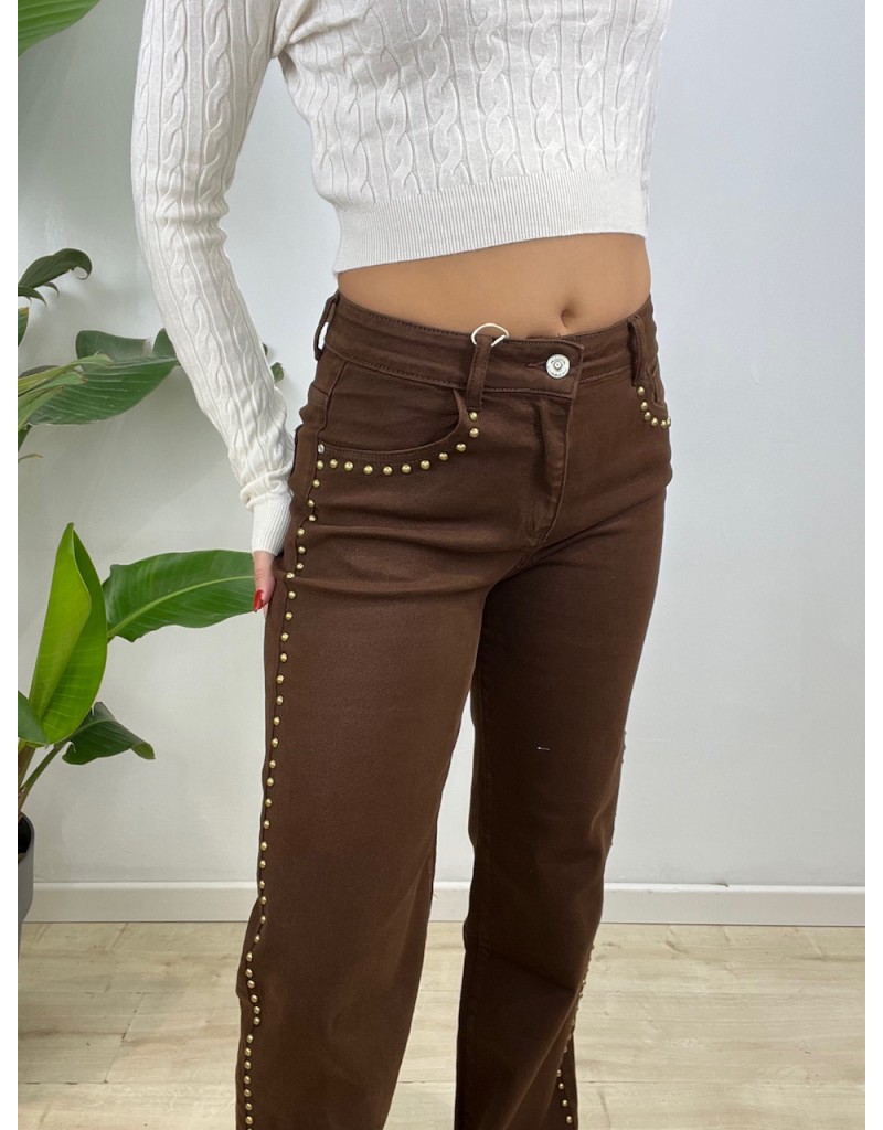Tessuto semielastico con borchiette.