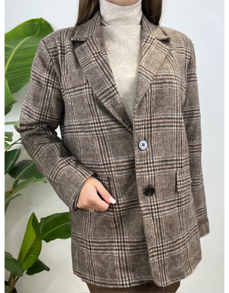 Blazer fantasia con due bottoni con tasche. con fodera interna.