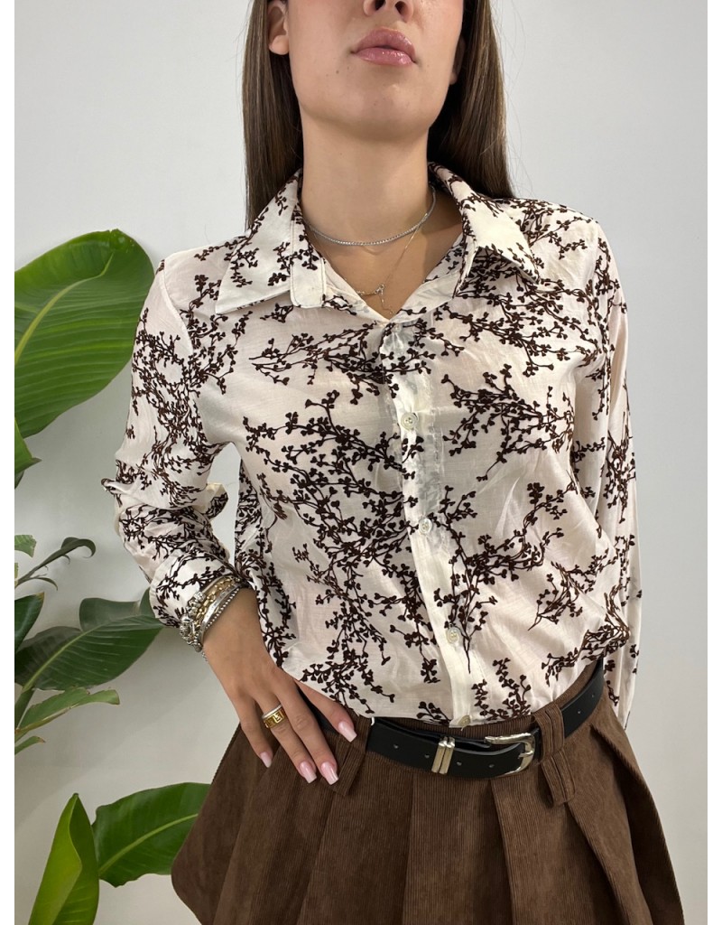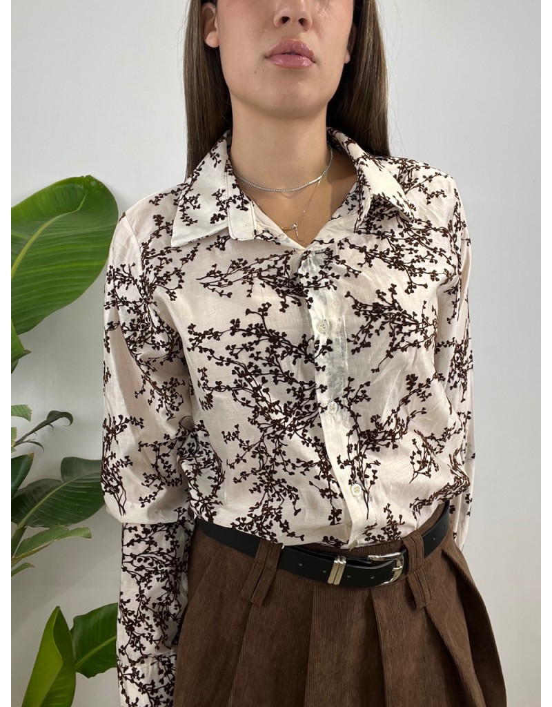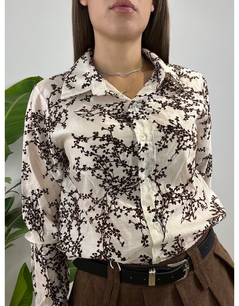 Camicia con ricamo in vellutino a forma floreale.