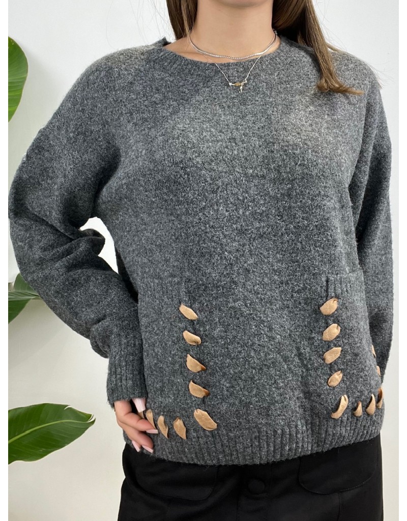 Pullover in maglia calda, con due tasche e cuciture.