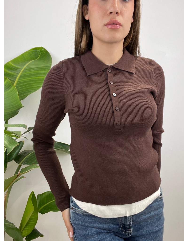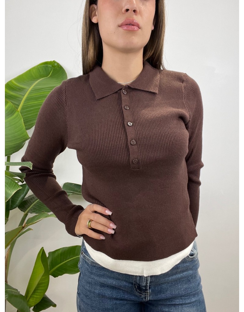 Pull modello polo a costine con fuorisciuta maglia.