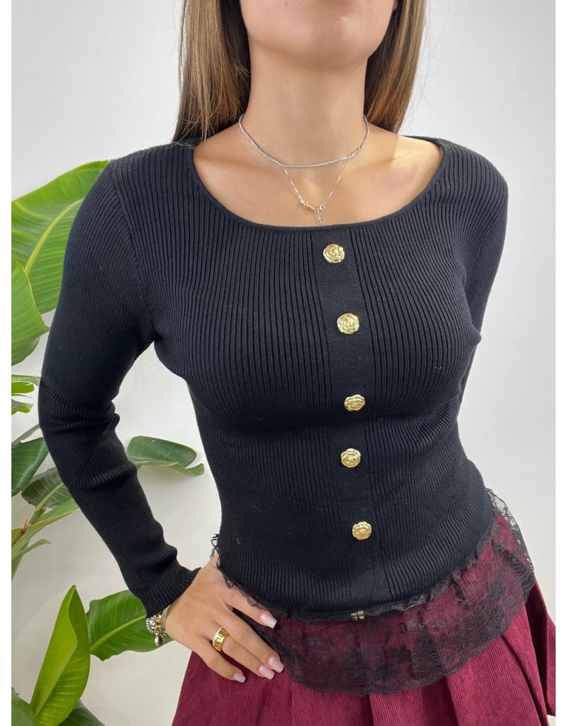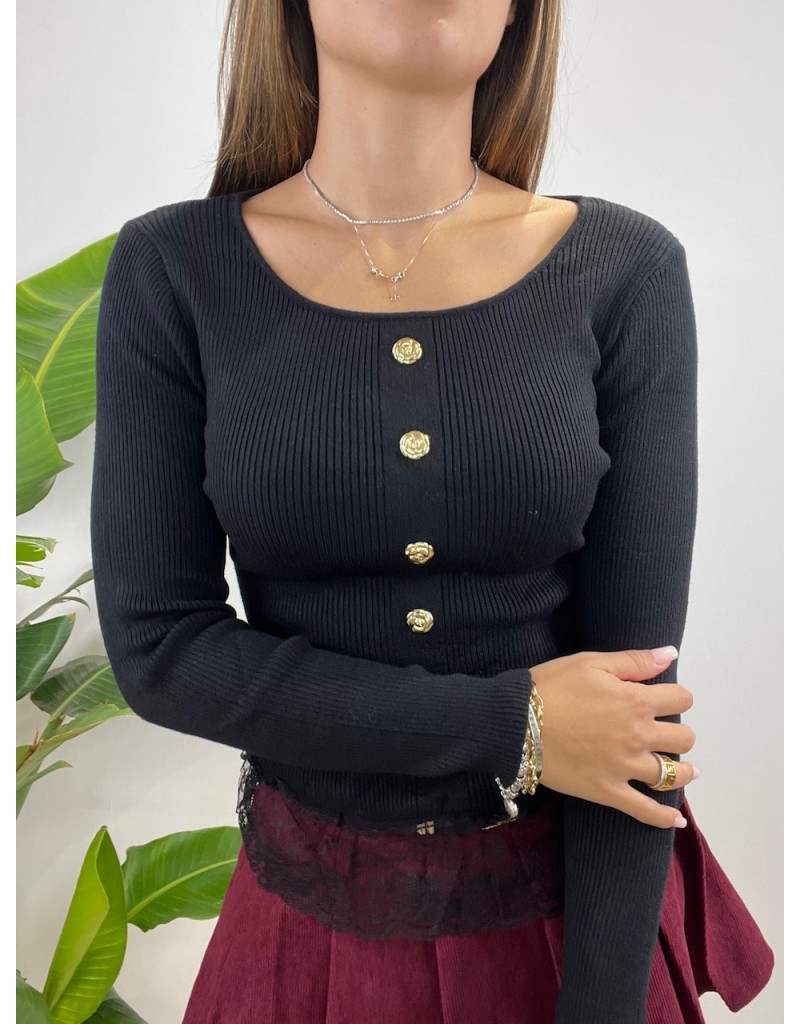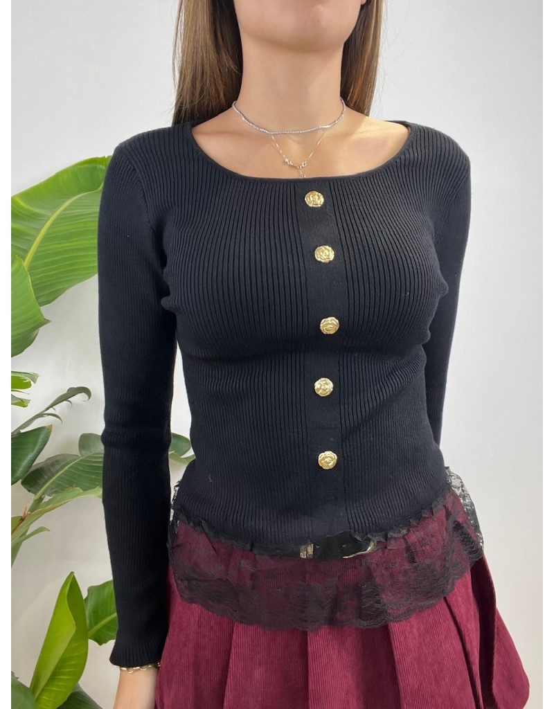 Maglia a costine con bottoni oro.