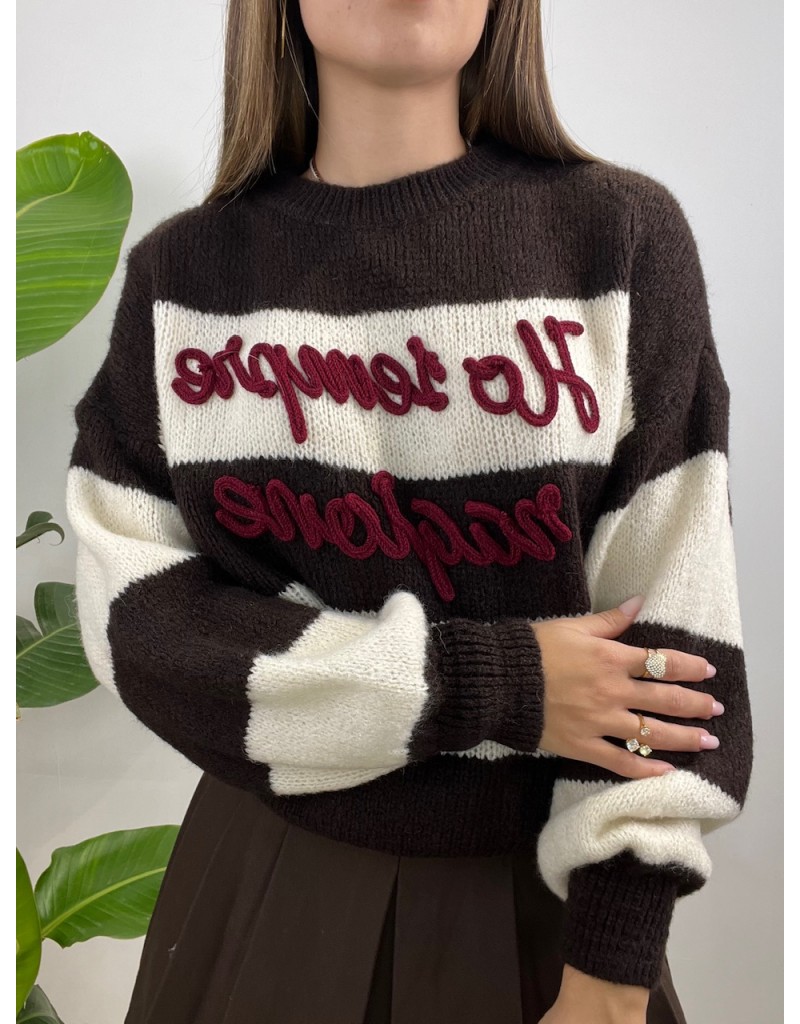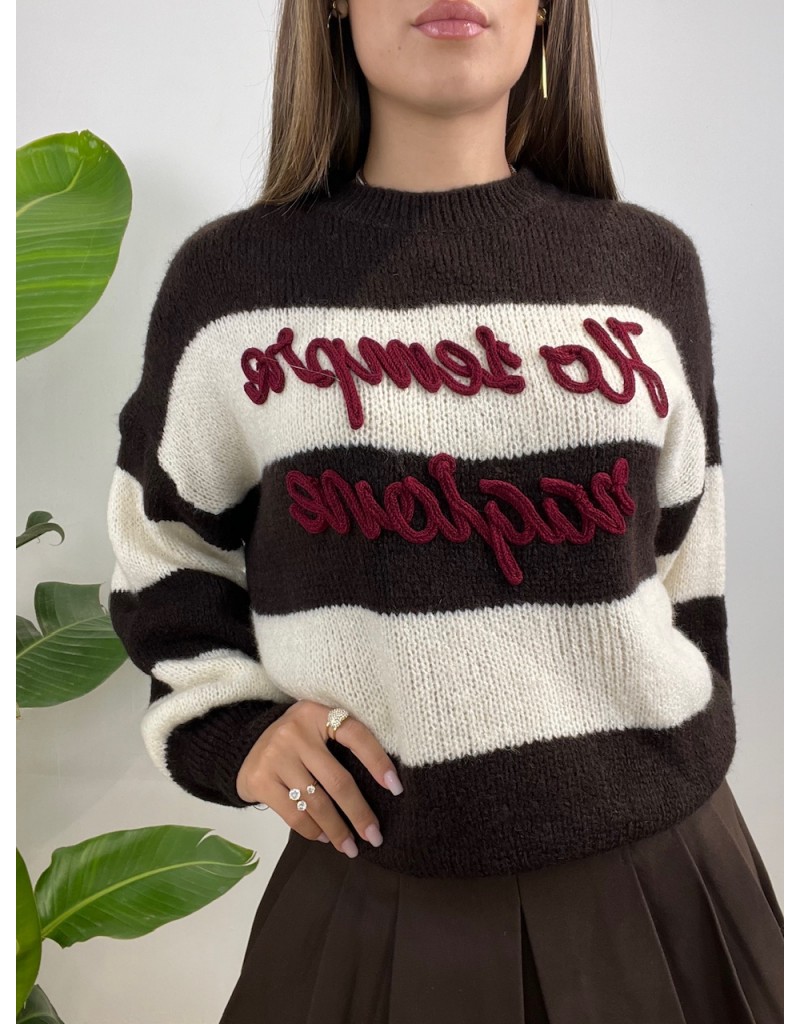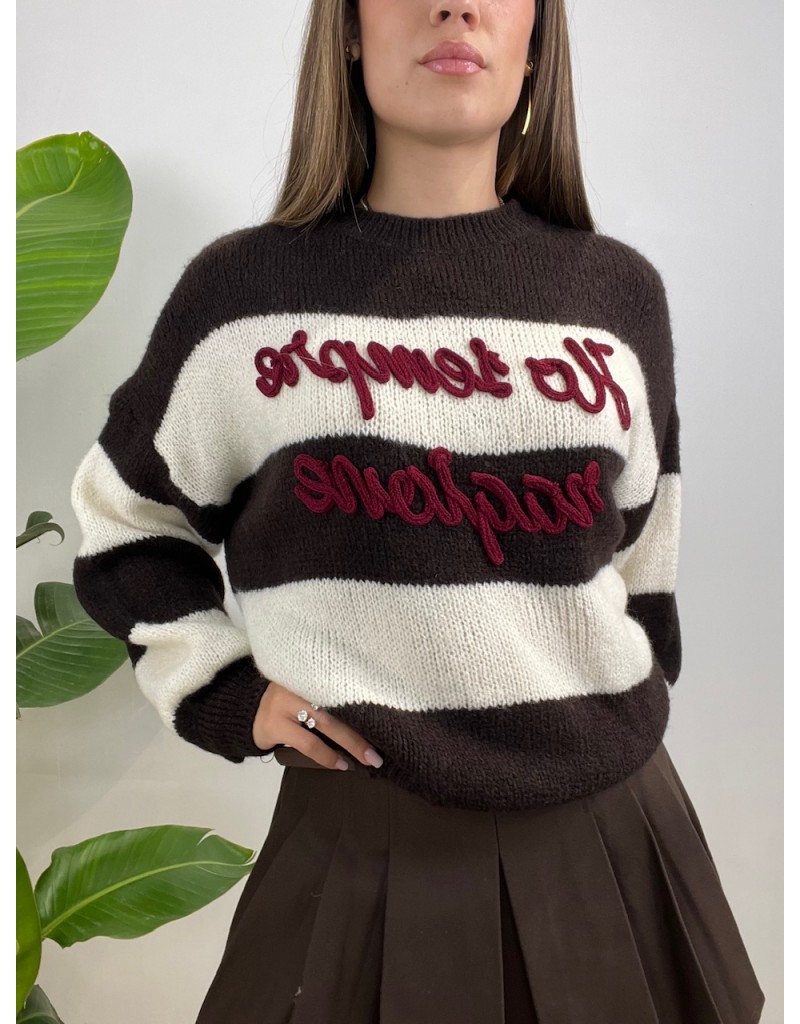 Pullover a righe larghe con scritta.