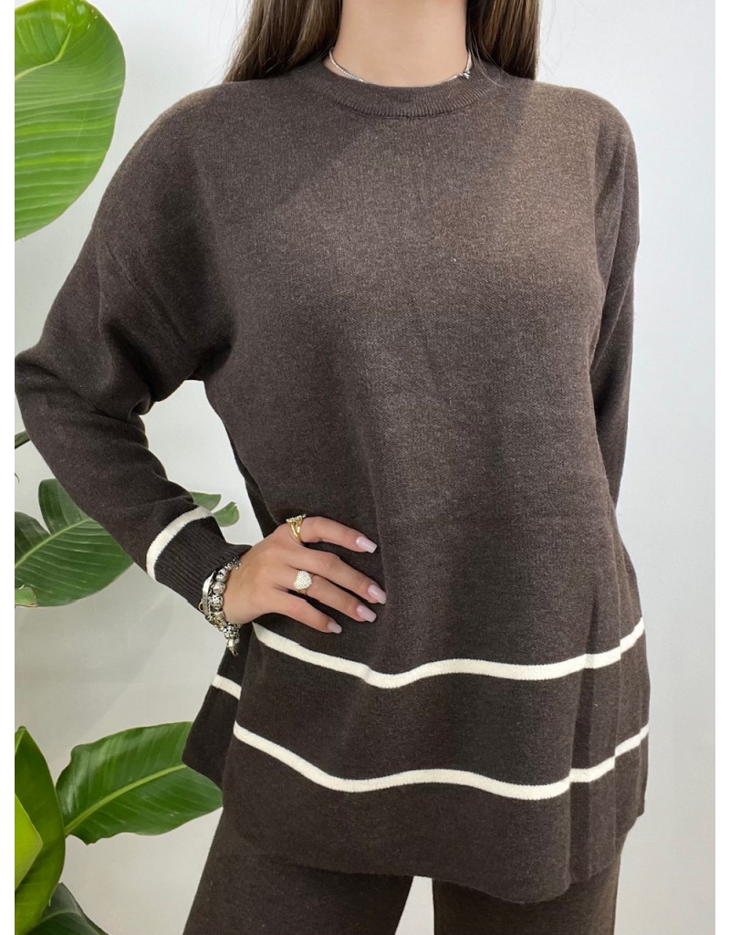- Maglia morbida con riga a contrasto;