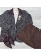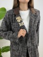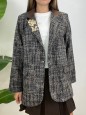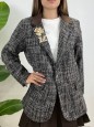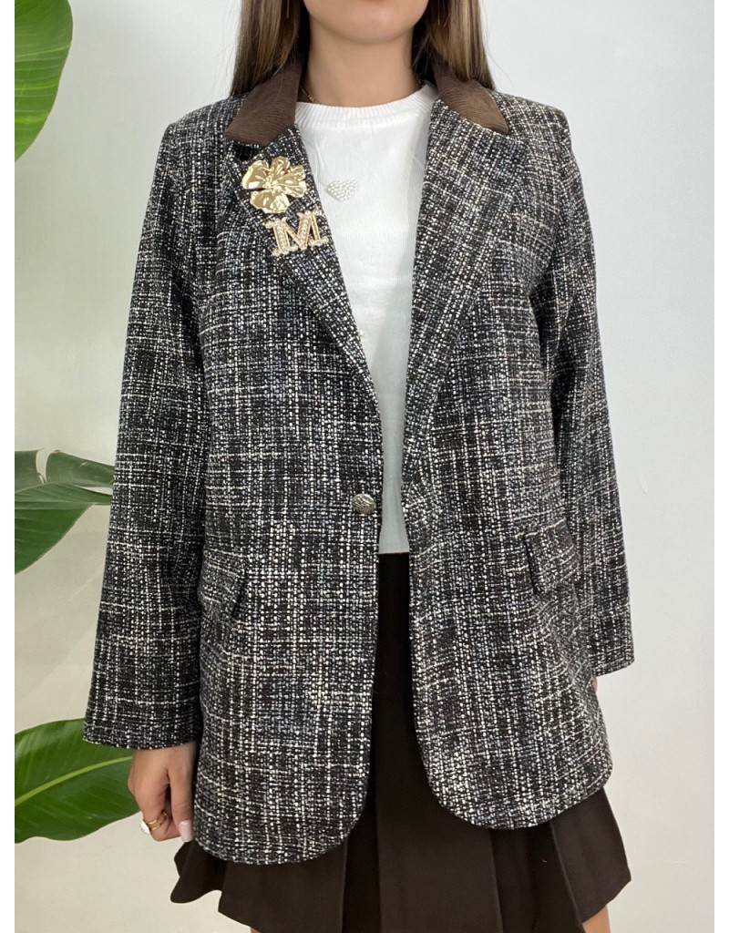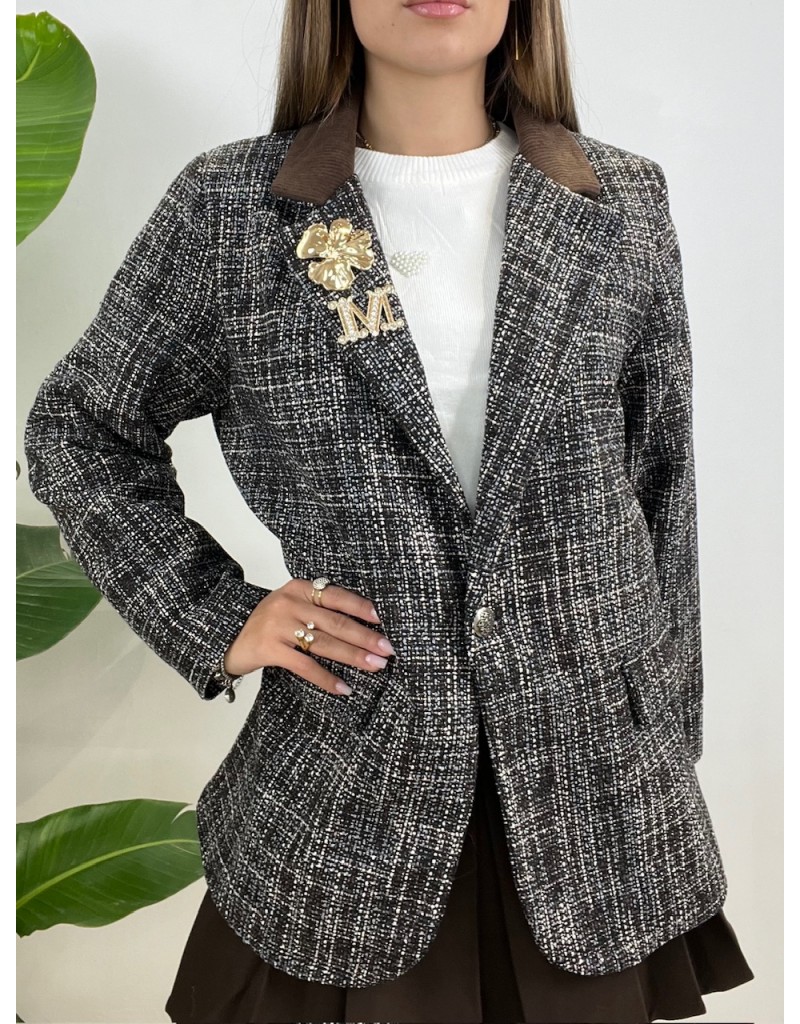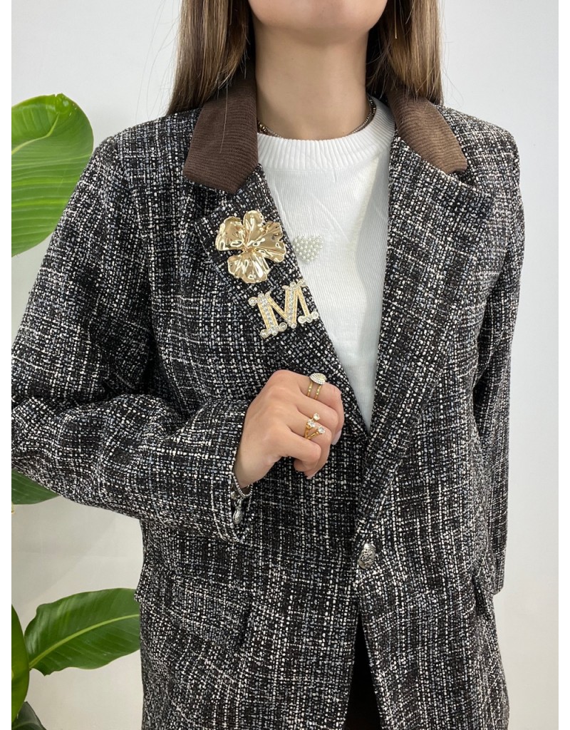 Blazer a fantasia con spilla e collo in velluto millerighe.