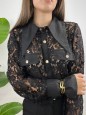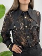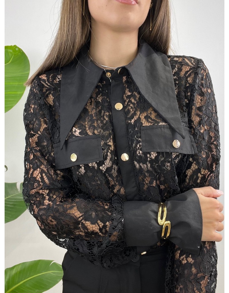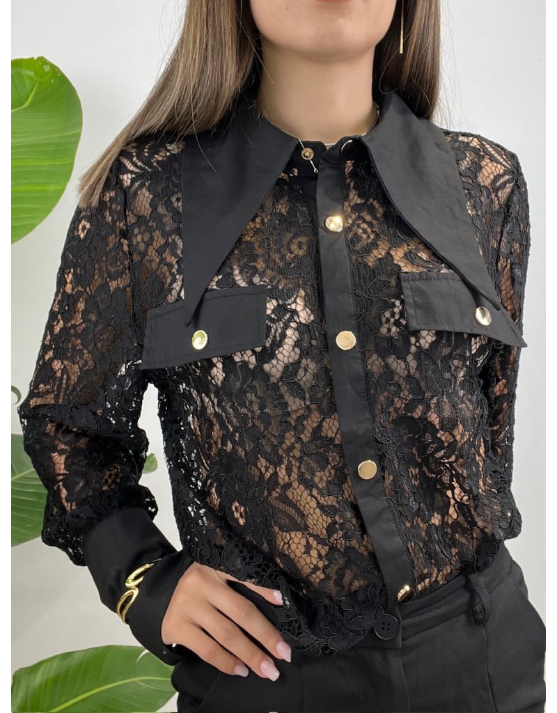 Camicia in total pizzo con tasche e bottoni oro.